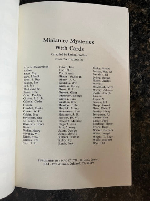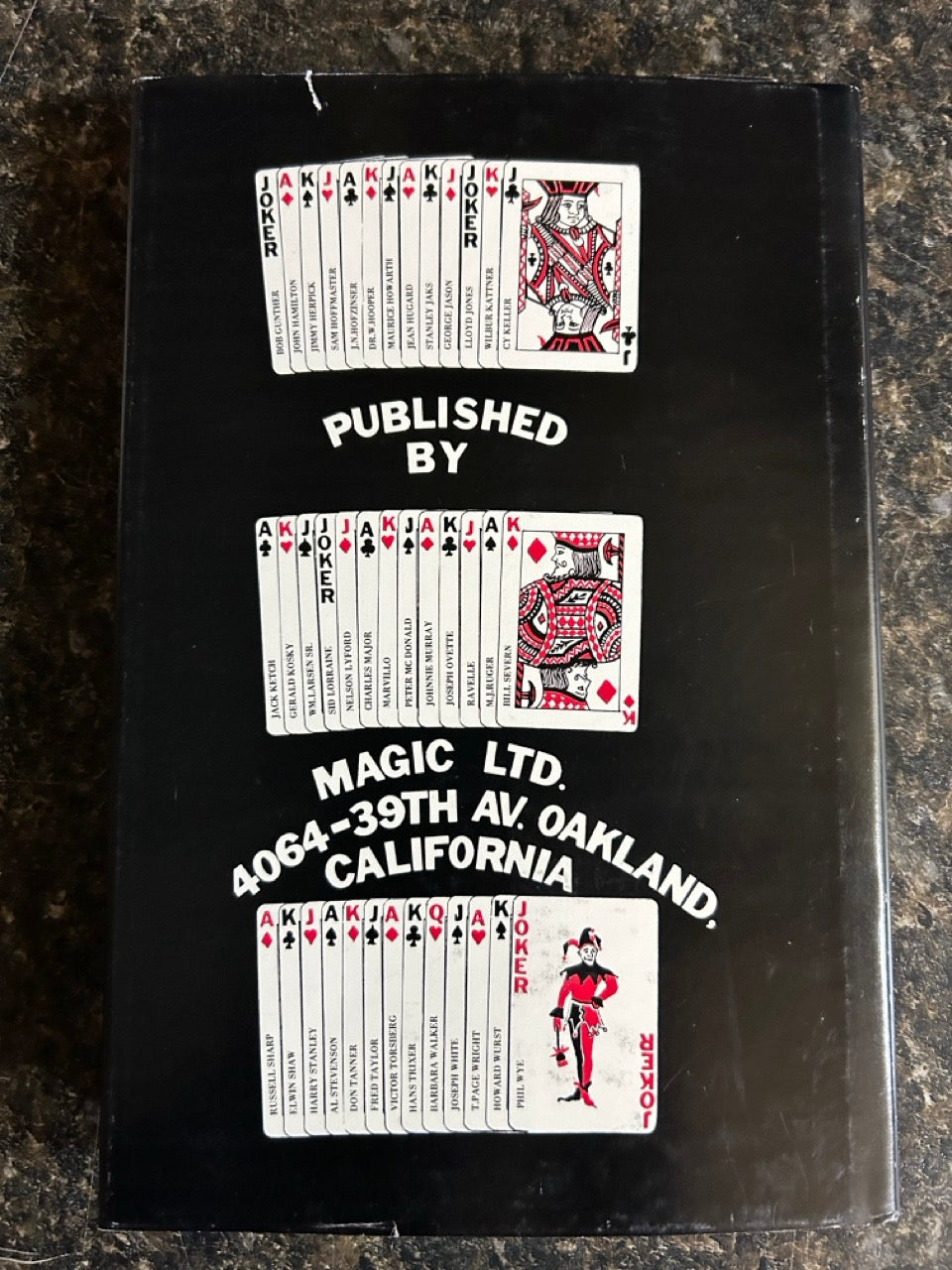 Copy 1: USED, HC w/dj, 166 Pages- IMPORTANT NOTE: Former owner has pasted his nameplate, as well as small photos of the magicians that are mentioned throughout this book, on the inside front cover & onto facing page. There may also be a colored dot on the spine, by which he indexed his collection, as well as underlining throughout. THIS IS A USED BOOK, and the listed price reflects these possibilities.