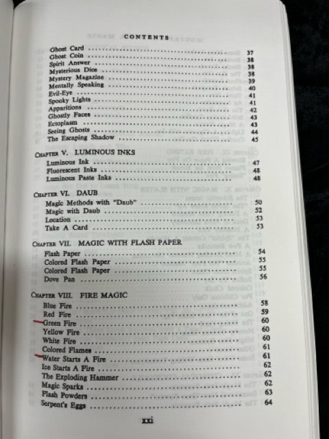 This is primarily a book of magic tricks using chemicals. There are chapters on Chemical Magic with Liquids; Luminous Paints; Dry Ice; Invisible Inks; Luminous Inks; Flash Paper; Fire Magic; Fire Eating; Magic with Slates; Chemical Cocktails; Chemical Stunts; Professional Magic; Chemical Jokes and Novelties. The pyrotechnic chapter (Fire Magic) includes colored fires and flames; starting a fire with water and ice; an exploding hammer; serpents'' eggs; snakes; burning ice; self-lighting candles; candles won''t stay lit; lighting a cigarette with ice and more. A fascinating book full of fun stuff for everybody. 164 pages.