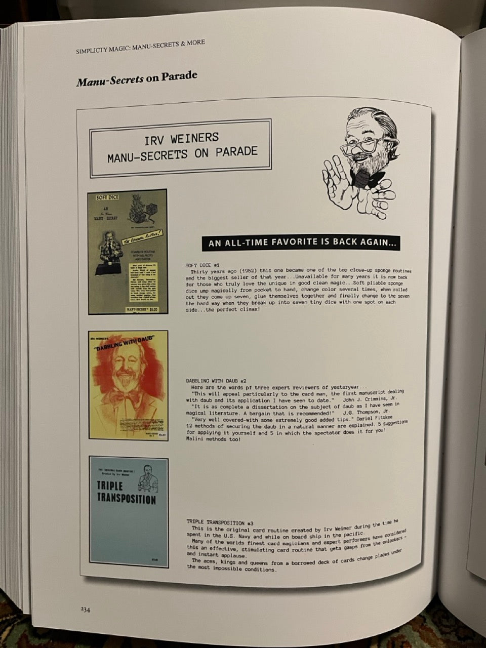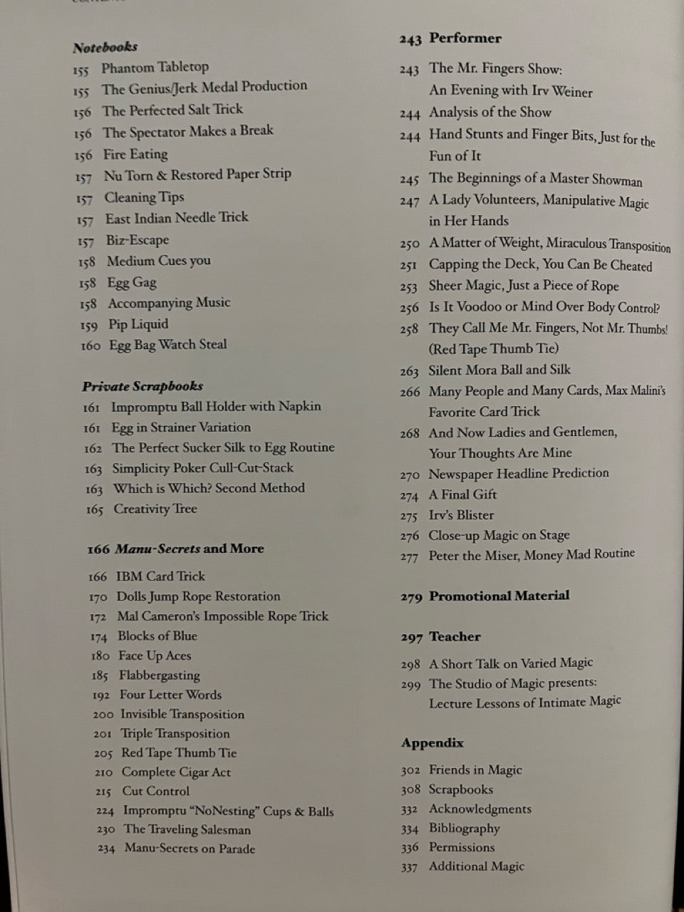 Irv Weiner was a force to be reckoned with in the North American Magic scene. He’s influenced some of the most influential magicians of the twentieth century. Magicians like Michael Ammar, Christopher Carter, and David Regal. Irv Weiner’s show was a powerhouse on college campuses. Not only will you learn incredible tricks, but this book is filled with essays, private scrapbooks, Irv’s lecture notes, and a complete walk-through of his legendary stage set. With over 80 tricks and sleights, this book covers everything from magic with cards, coins, napkins, rope, cigarettes, eggs, sponges, mentalism, cups & balls, and includes tricks for close-up and stage. Even some of Irv’s legendary effects, like his Red Tape Thumb Tie is covered in loving detail.