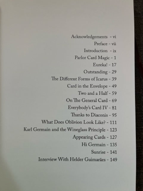 This is just a small sample of the 12 professional routines and three lengthy essays featured in this gorgeous 174-page hardback book. This is a must-read for any card magician looking to expand the potential of their card magic.