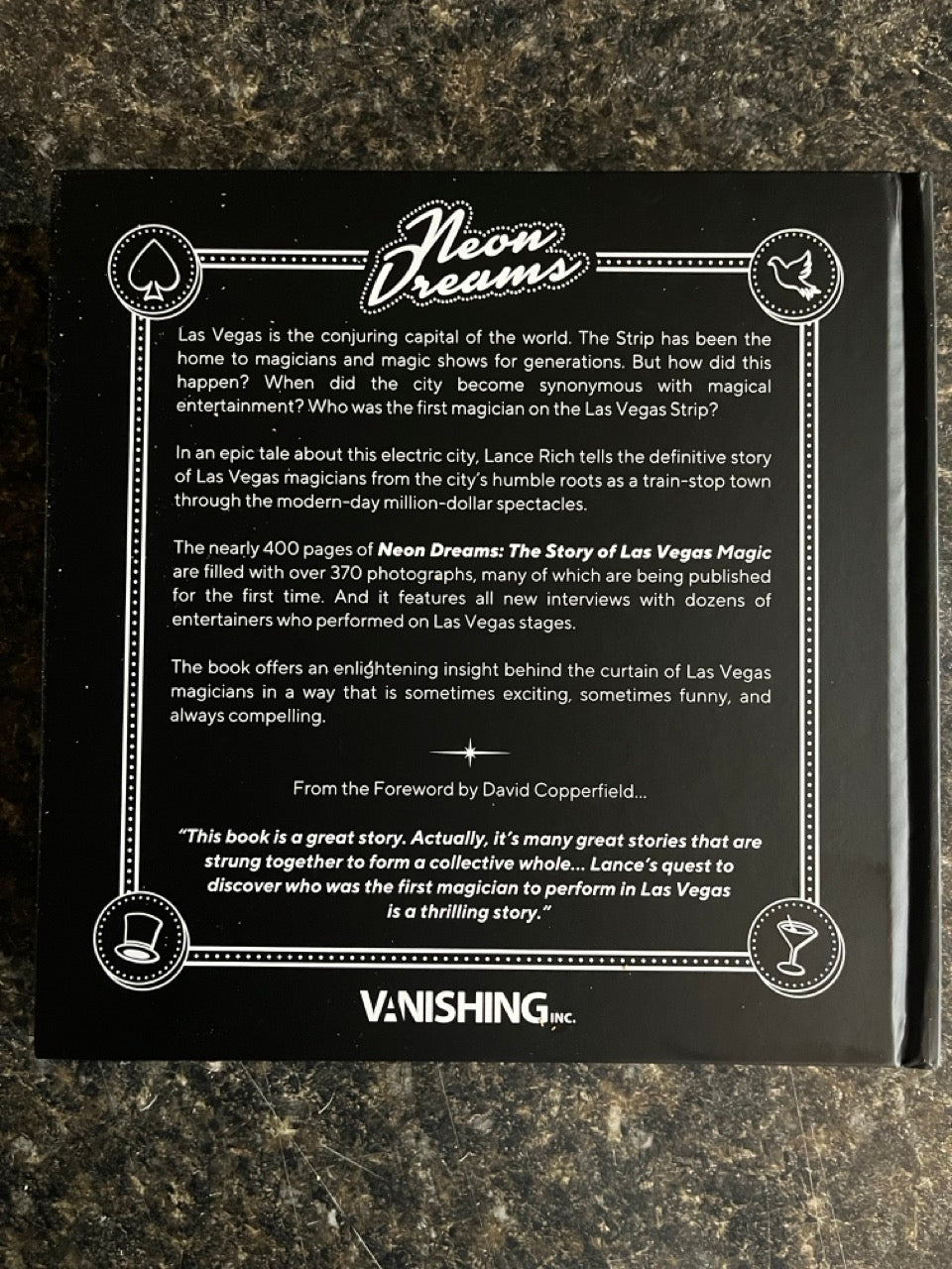 Written by Lance Rich and produced by Vanishing Inc, Neon Dreams: The Story of Las Vegas Magic gives you a front-row seat to the transformation of Las Vegas from a modest railroad stop town to the mecca of multi-million-dollar magical extravaganzas. This captivating story is filled with unexpected twists and turns that make it impossible to put down once you start.