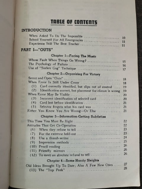 Teaches how to be ready for any and all emergencies within card magic, especially while performing Ambitious Card routines. This is a must have for all card magicians. With this information in your arsenal you can hardly go wrong no matter what terrible thing unexpectedly befalls you.