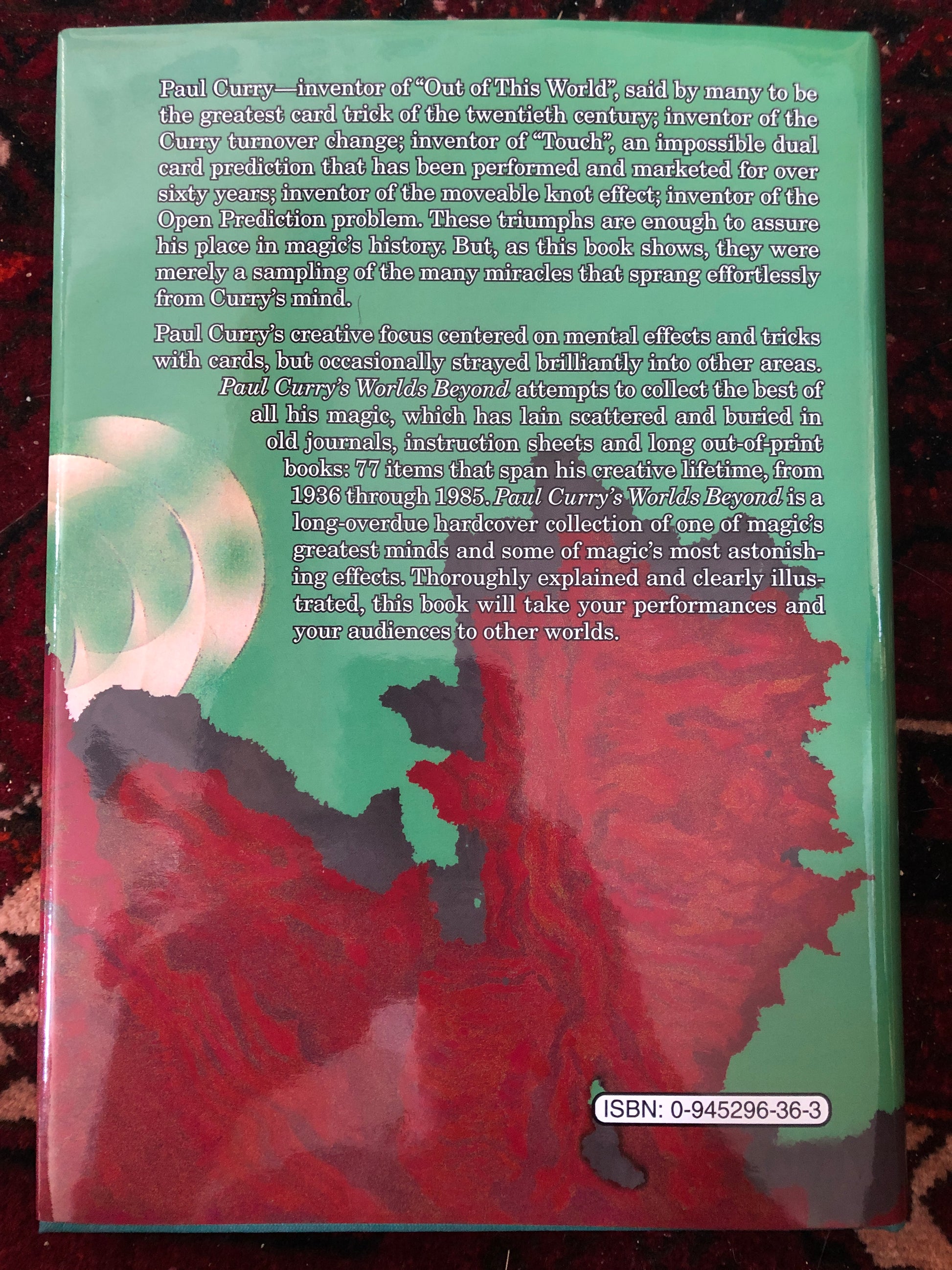 In Paul Curry's Worlds Beyond you will find the original version of "Out of This World", which some still consider the best of the many variations that have been devised. You will also find all the other Curry classics, "Touch", "The Sliding Knot", "Open Prediction", "The Color-changing Deck", "Never in a Lifetime", "The Power of Thought", "Probability Zero" and "IOU".