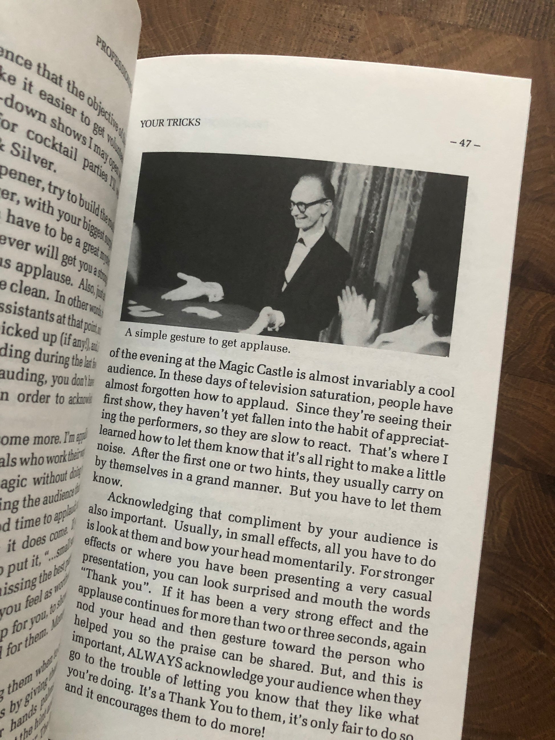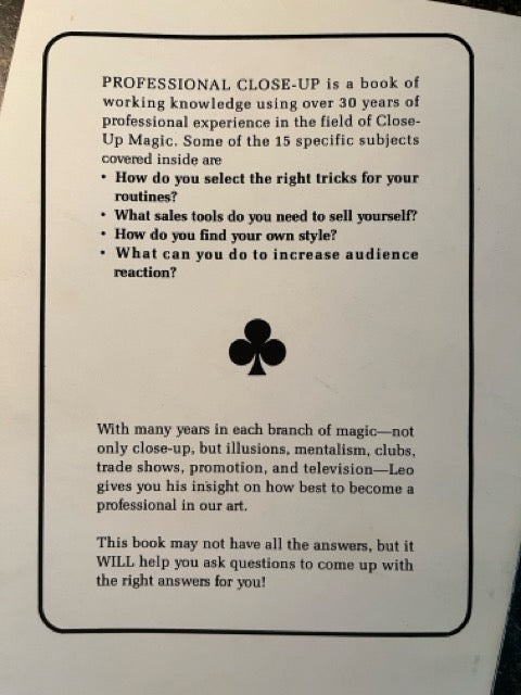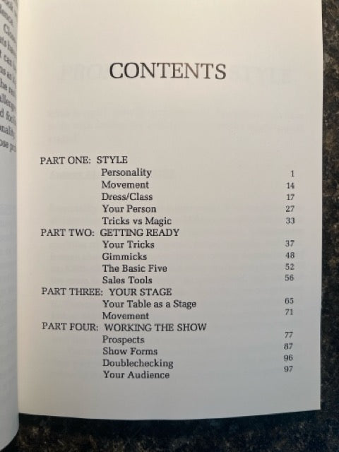 Not a book of tricks. But how to attain a professional attitude in creating your act, dealing with prospects for a show, and at the show itself.