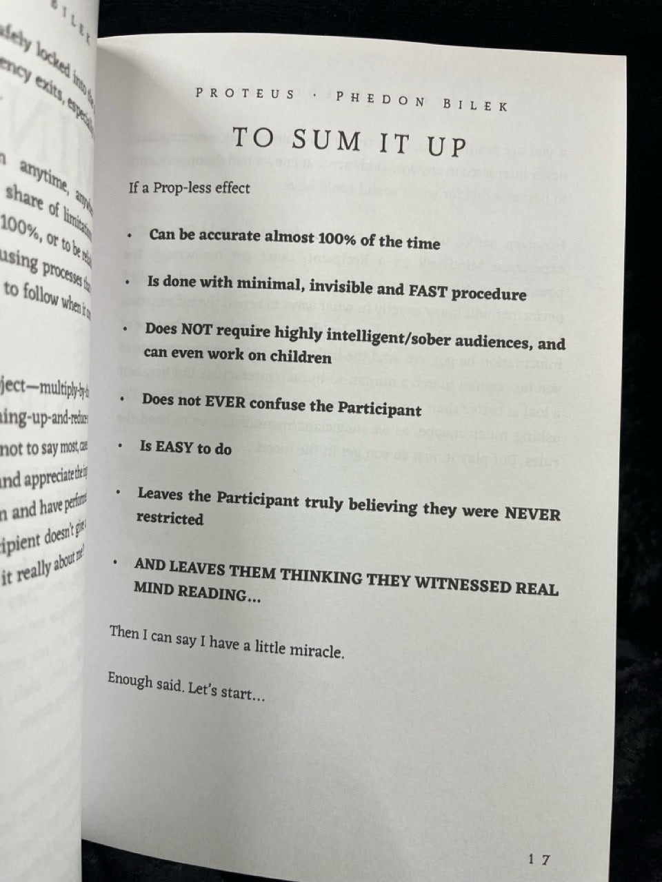After having witnessed Proteus, spectators have no other alternative than to truly believe they have witnessed the Real Thing. They are asked to FREELY think of a drawing, ANY drawing, and despite impossible odds the mentalist KNOWS EXACTLY what they have in mind. All the time.