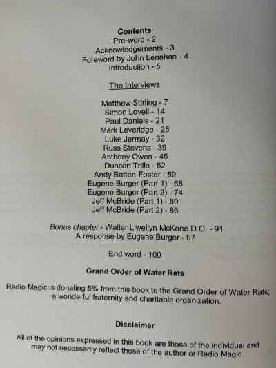 Radio Magic: The Interviews Season One is a hard-backed collection of the transcripts of interviews broadcast from July to December 2005. With a foreword by John Lenahan, this book of expert comment and advice is a gold-mine for the magician looking to improve their craft and offers a worldview of magic in the early 21st century.