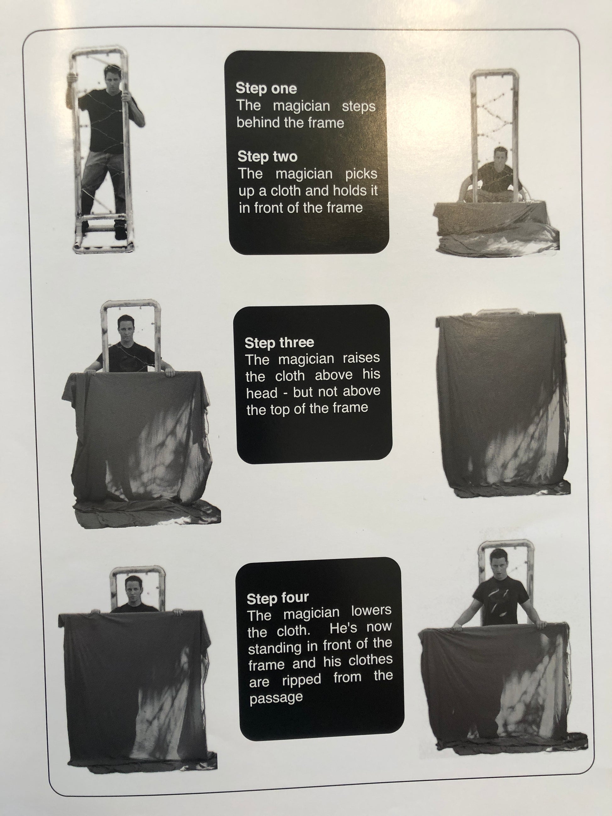 "An Incredible Illusion, where you move your body through solid matter (a portal made from piping and barbed wire)."