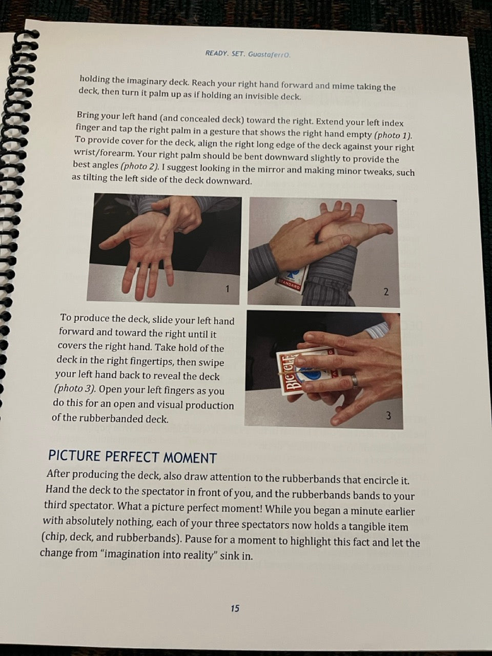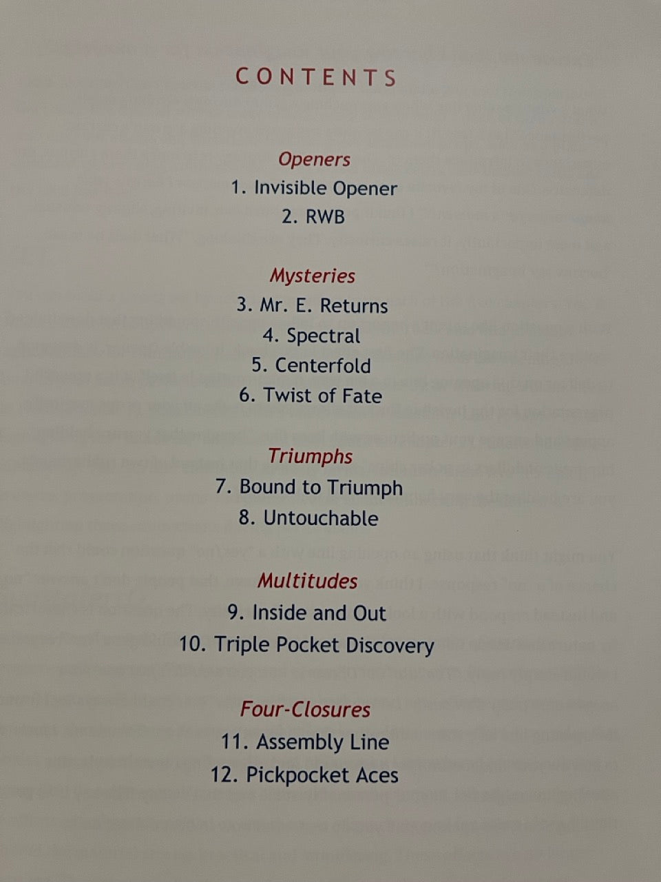 10. Triple Pocket Discovery – A pocketed card melts up through the fabric; another card melts into the pocket; and the last card is found using the penetrating power of the mind.