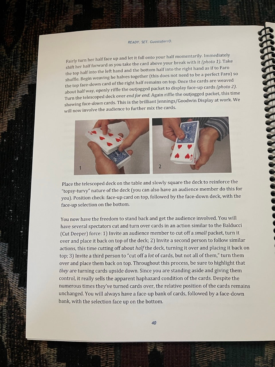 8. Untouchable – The audience openly shuffles and cuts the deck with a mixture of cards face up and face down. Without intervention from the performer, the cards straighten themselves.