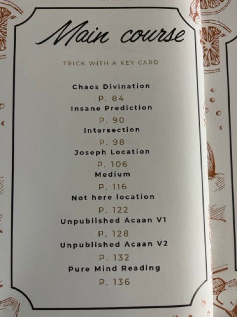 - Main Course (Advanced Routines): More structured effects using advanced sleight of hand, misdirection, and psychological techniques. Ideal for magicians looking to refine their craft.