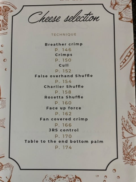 - Cheese Selection (Techniques & Fundamentals): Essential techniques and sleights that serve as the foundation for deceptive magic. Includes four exclusive techniques developed by Joseph B.