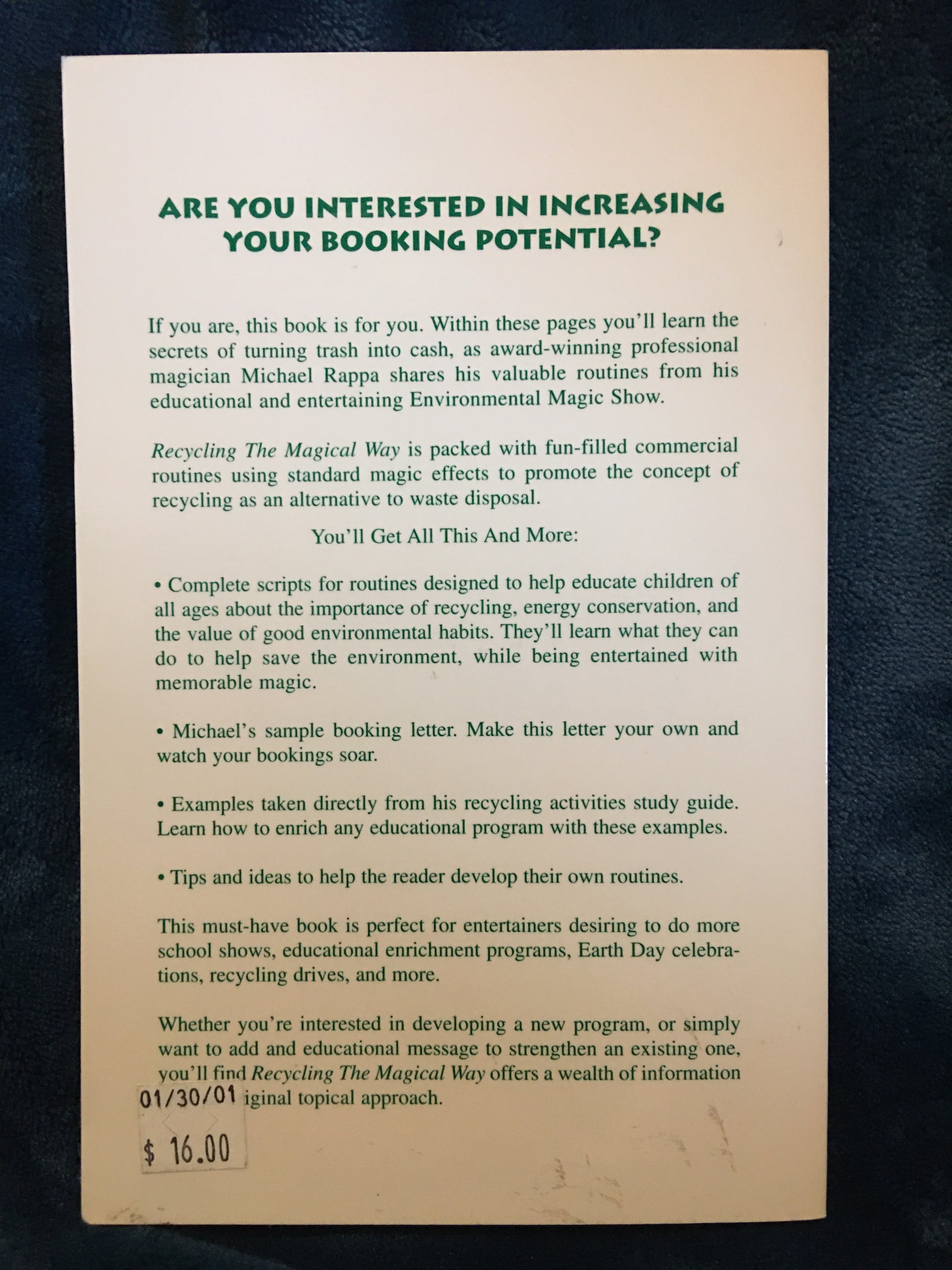Within the pages of Recycling The Magical Way, you will learn the secrets of turning trash into cash, as award-winning professional magician Michael Rappa shares his valuable routines from his educational and entertaining environmental magic show.