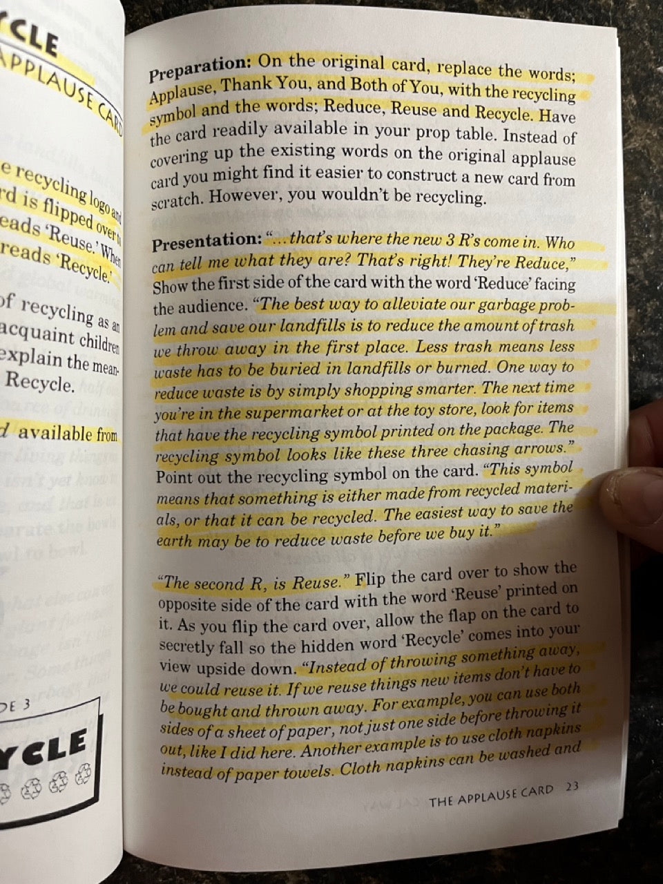 - Complete scripts for routines designed to help educate children of all ages about the importance of recycling, energy conservation, and the value of good environmental habits. They'll learn what they can do to help save the environment, while being entertained with memorable magic.