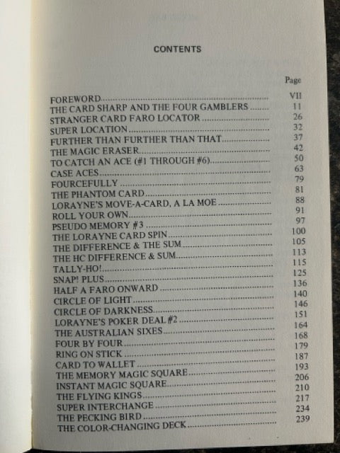 Another great classic of card magic, the first to be self-published by Lorayne. Includes beautiful line drawing illustrations. Here you’ll find wholly original creations, as well as Lorayne’s version of Stewart James’ Further Than That, as well as Moe’s Move-A-Card. Don’t miss Lorayne’s fantastic routine, The Card Shark & The Four Gamblers- it will blow you and your audience away!