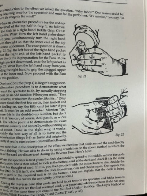Top-notch card material from some of the world's best magicians, including Jack Avis, Gordon Bruce, Peter Duffie, Cy Endfield, Trevor Lewis, Simon Lovell, Edward Marlo, Chris Power, Roy Walton, Herb Zarrow and many others. Hardbound, 256 pages, 75 tricks, over 90 original sleights and subtleties, nearly 260 illustrations, over 30 photos.