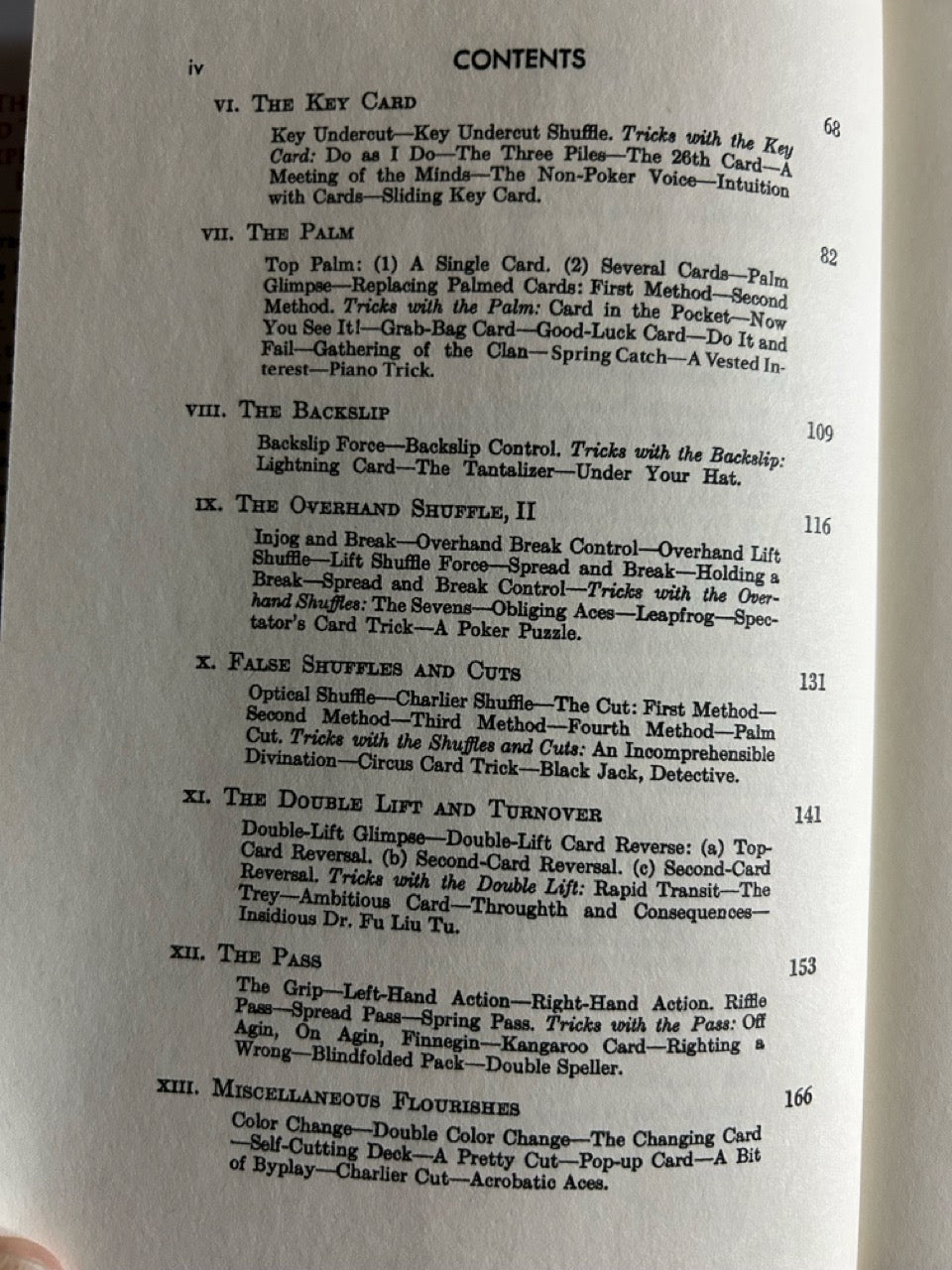 The authors, both noted authorities on magic, present complete, easy-to-understand explanations of shuffles, flourishes, the glide, the glimpse, false shuffles and cuts, the pass, the classic force and many other techniques.