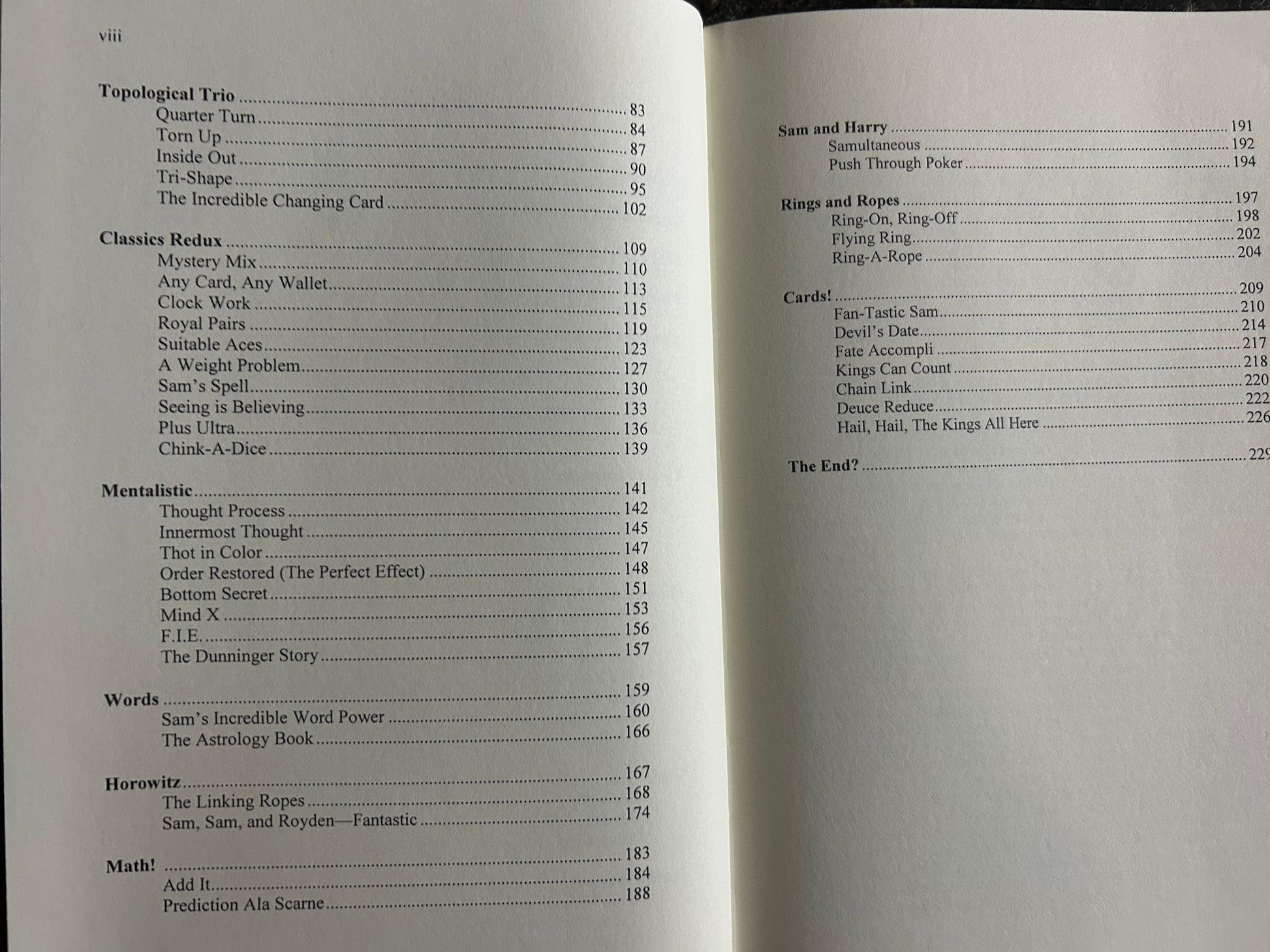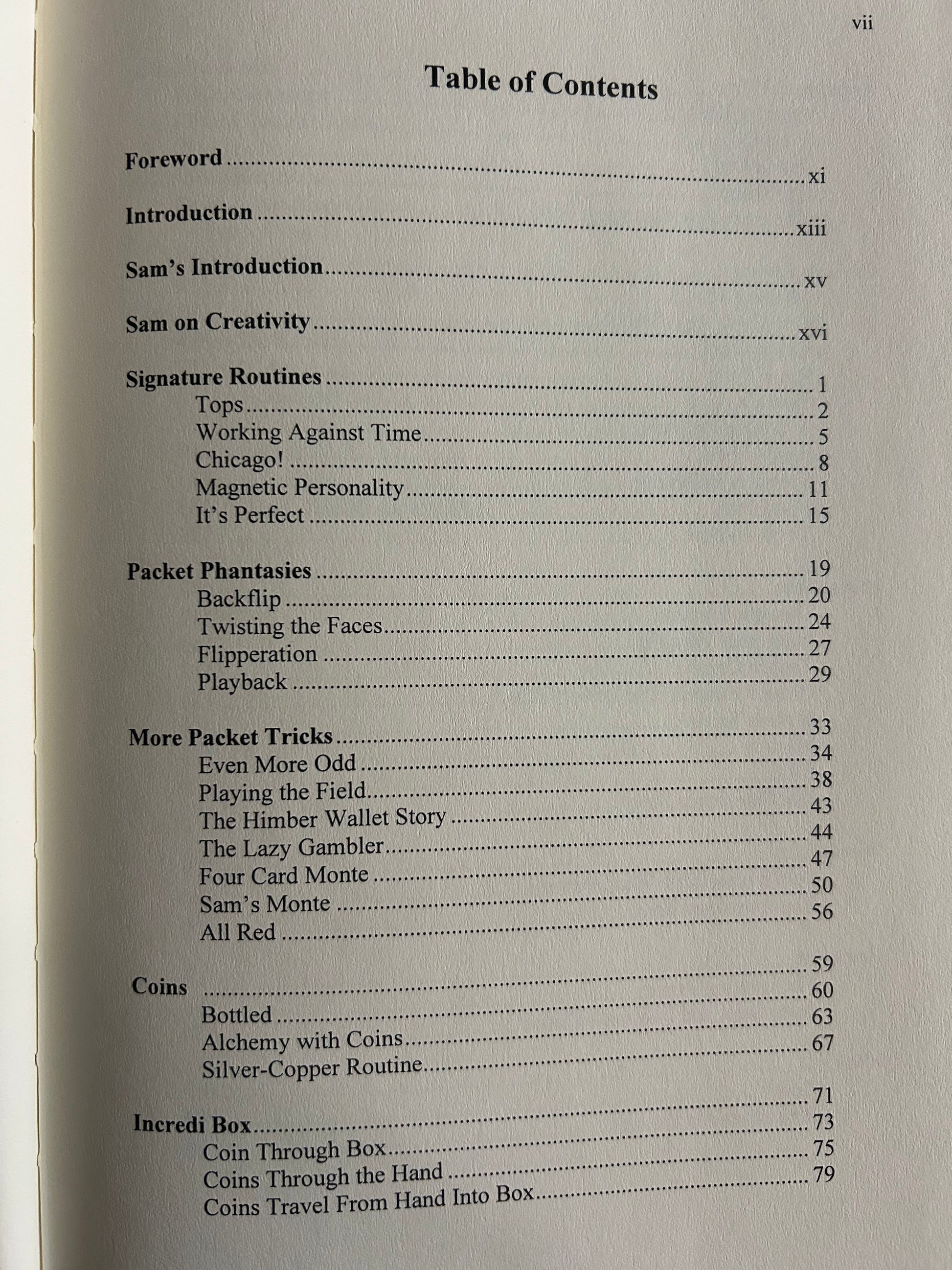Sam Schwartz has been publishing his routines, ideas and techniques in various magazine publications for more than 50 years. He has also released a number of marketed effects through Louis Tannen, Inc. and has contributed to dozens of Karl Fulves publications. This book is a compilation of many of his best routines. Most of the magic is easy to learn and often fools magicians and non-magicians alike. You will find close-up routines with cards, ropes, coins, rings, and many mentalism based effects. You will enjoy working through the clever methods as well as performing the routines for your friends, family and even professionally.