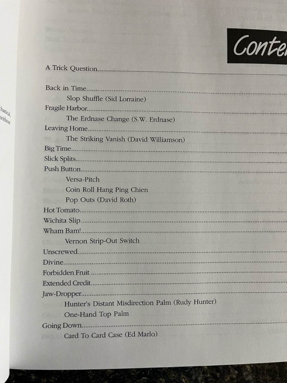 - Nightcap – After signing his name on a card, the spectator tries to put the cap back on the marker, only to find that it is now a solid, cylindrical tube!