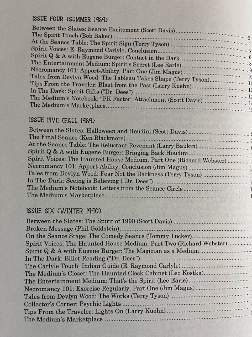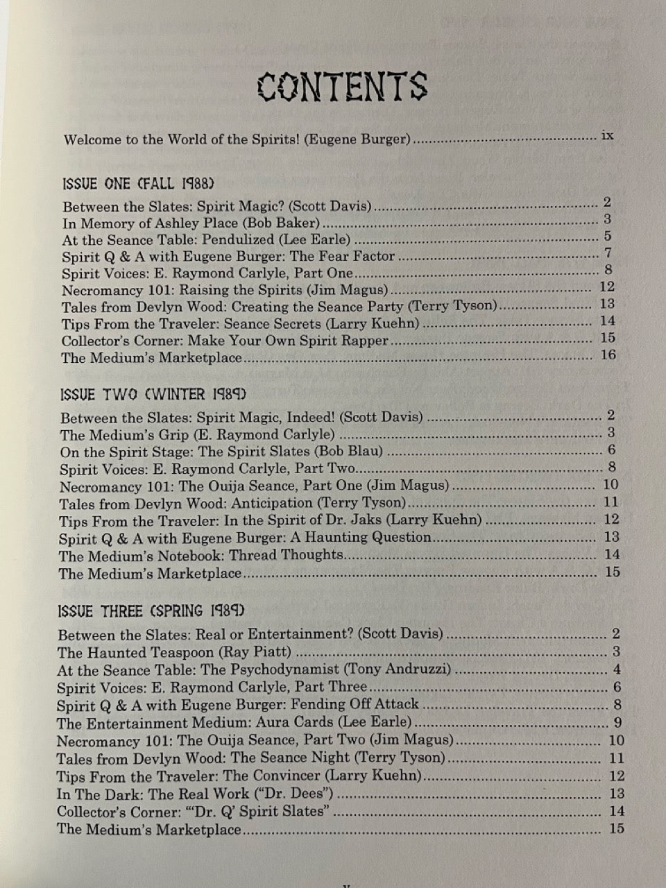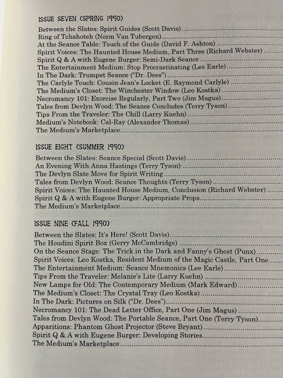 The book SEANCE is the re-printed complete collection of all twelve SEANCE quarterly magazines devoted to spirit magic.