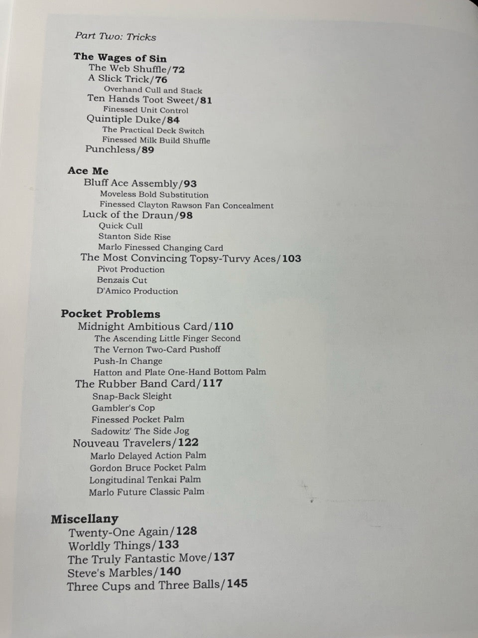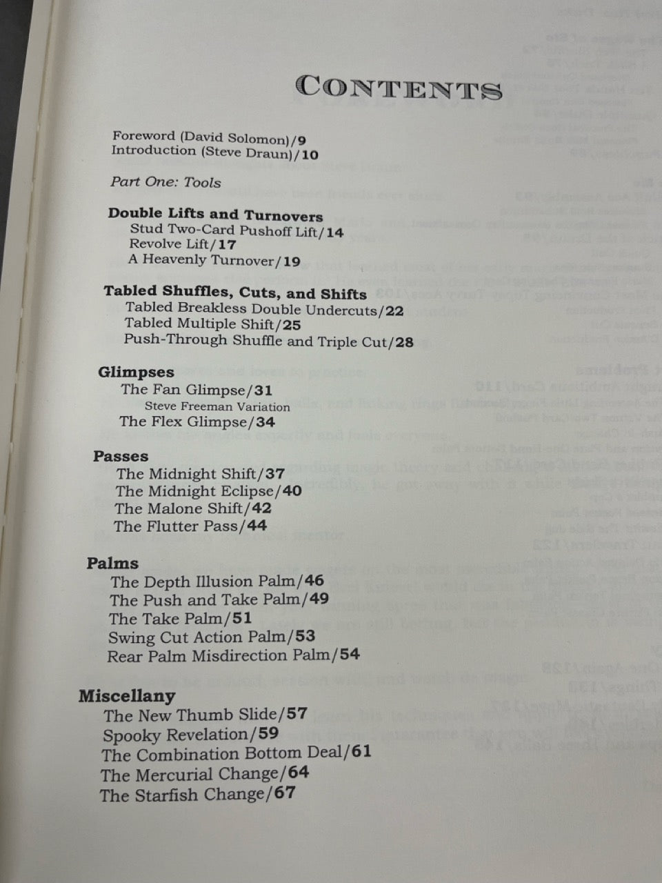 There are no less than twenty sleights, palms, bottom deals and more, in this fine book. From the vast files of Steve Draun, you will learn enough new card magic to start a career. This book is broken up into "Tools" and "Tricks" and is filled with fabulous illustrations, easy to read and fun to learn.