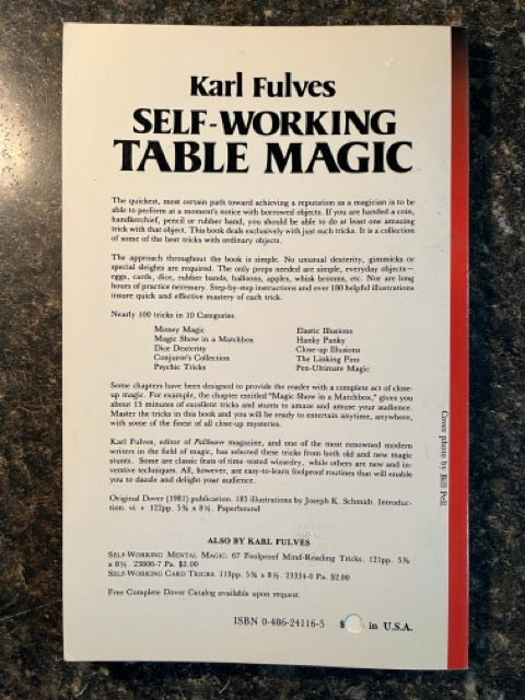 Karl Fulves, one of the most renowned modern writers in the field of magic, has selected these tricks from both old and new magic stunts. Some are classic feats of time-tested wizardry, while others are new and inventive techniques. All, however, are easy-to-learn, foolproof routines that will enable you to dazzle and delight your audience.