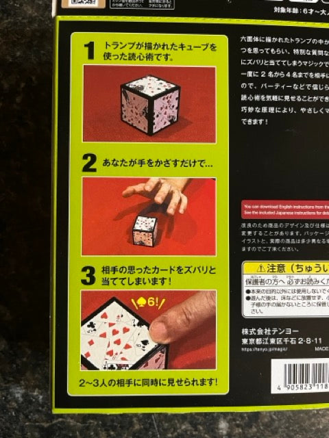 You show your audience a cube full of various playing cards on every side. Several spectators each look at and think of one card from the cube. You then read their expressions and accurately identify every single person's card!