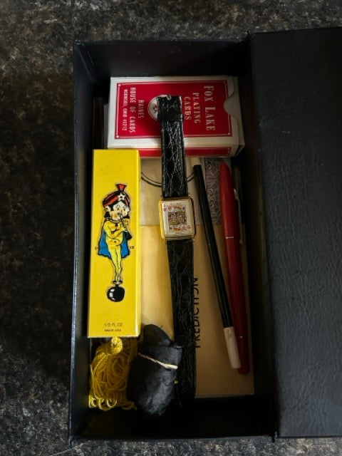 Silk, wand, pen, deck of cards, watch, insurance policy, etc.