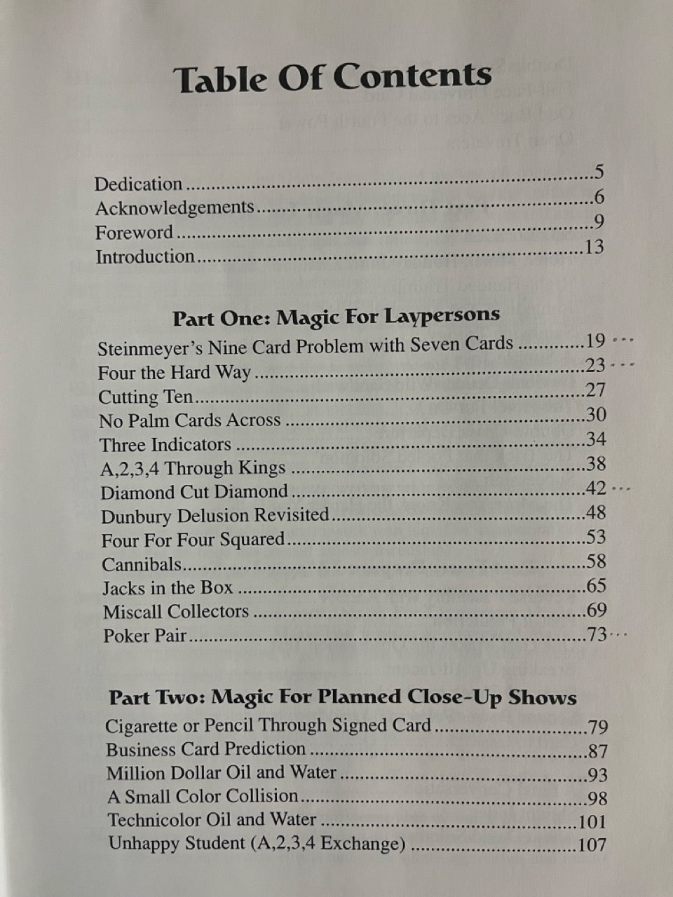 The beginner will find material requiring minimal skill, while the seasoned expert will find routines employing more advanced techniques. In every case, the result is amazing card magic! In addition, this book provides novel natural handlings with clean, well thought out methods. David eliminates extraneous moves and through subtlety and devilishly clever thinking, creates fooling card effects.