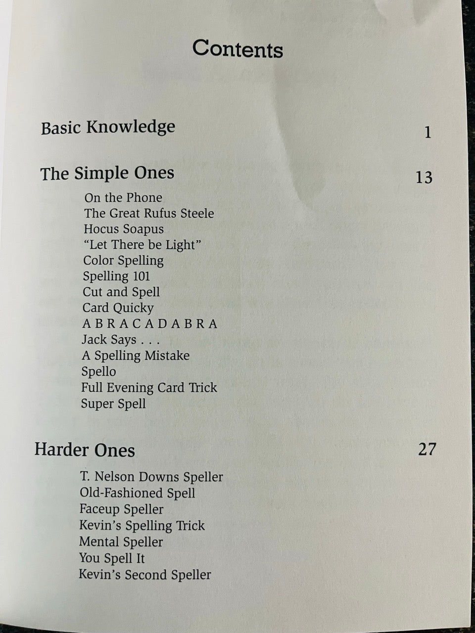 - Spellers is a book that should be in every cardman's library as it covers a favorite field of card effects that all cardmen like, that of finding a selected card by spelling its name. Here are methods varying from the very easiest all the way to complicated setups and presentations - in short, something for every magician's style. So get a deck of cards, sharpen your wits, and try these stratagems for locating selected cards by their very name. LIKE NEW, paperback, 52 pages