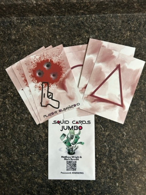 FOLLOWING ON FROM THE PHENOMENAL SUCCESS OF THE REGULAR SQUID CARD SET, Squid Cards Stage brings the traditional ESP deck to a new and exciting audience.With over 150 million households watching the biggest TV show in Netflix history, we have created instantly recognizable symbols ON JUMBO SIZED cards that allow for creative presentations never before seen.Included along with the deck of 12 specially MARKED cards are 4 easy to do yet mind boggling routines you will be able to add to your repertoire immediately. With collaborations from Michael Murray, Harry Robson and Matthew Wright Squid Cards Stage give modern twist on some classic routines meaning you can play THE GAME and amaze at the same time.