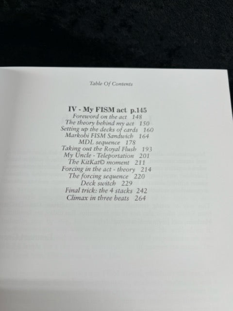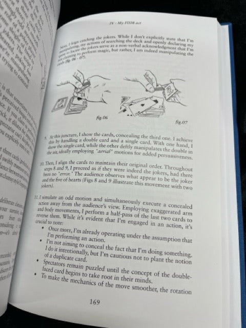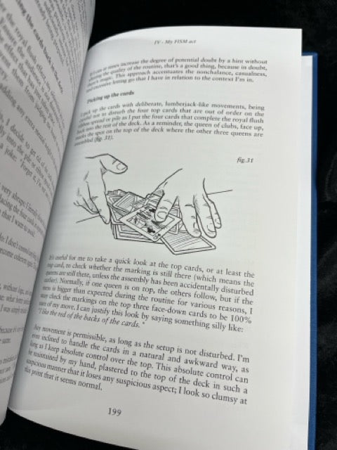 In addition to his personal reflections, Markobi takes readers behind the scenes of his FISM act, a cartomagic masterpiece that earned him the title of world champion. Delving into the theory behind each trick, he reveals the secrets of his character, the creation of a captivating atmosphere, and the importance of improvisation in adapting to audience reactions. Markobi details key techniques such as MDL and subtle forcing, explaining how he manipulates perceptions to maintain the illusion of controlled chaos. Each carefully orchestrated sequence builds to a spectacular climax. By sharing his psychological strategies and conditioning techniques, Markobi provides an invaluable source of inspiration and expertise.