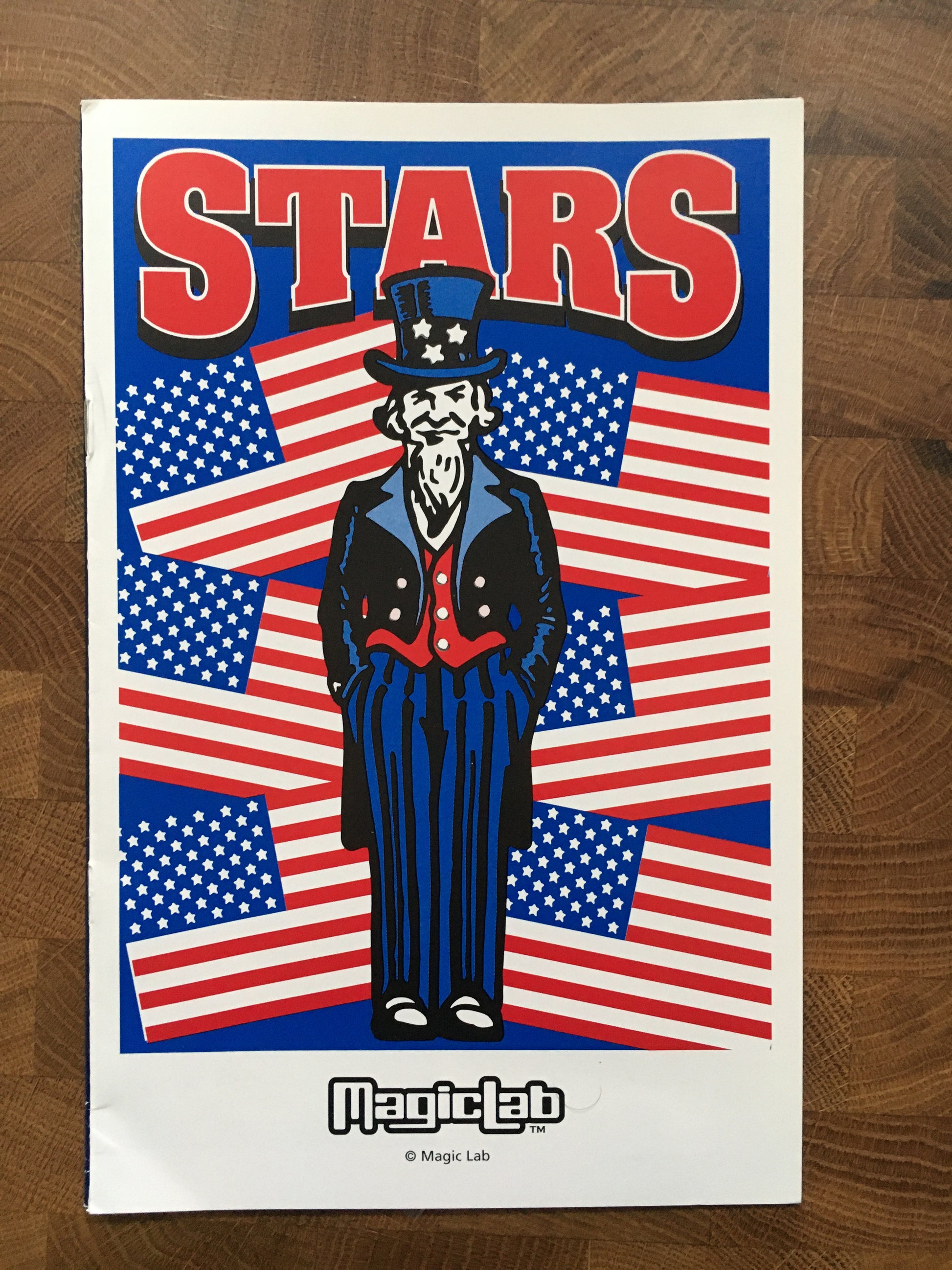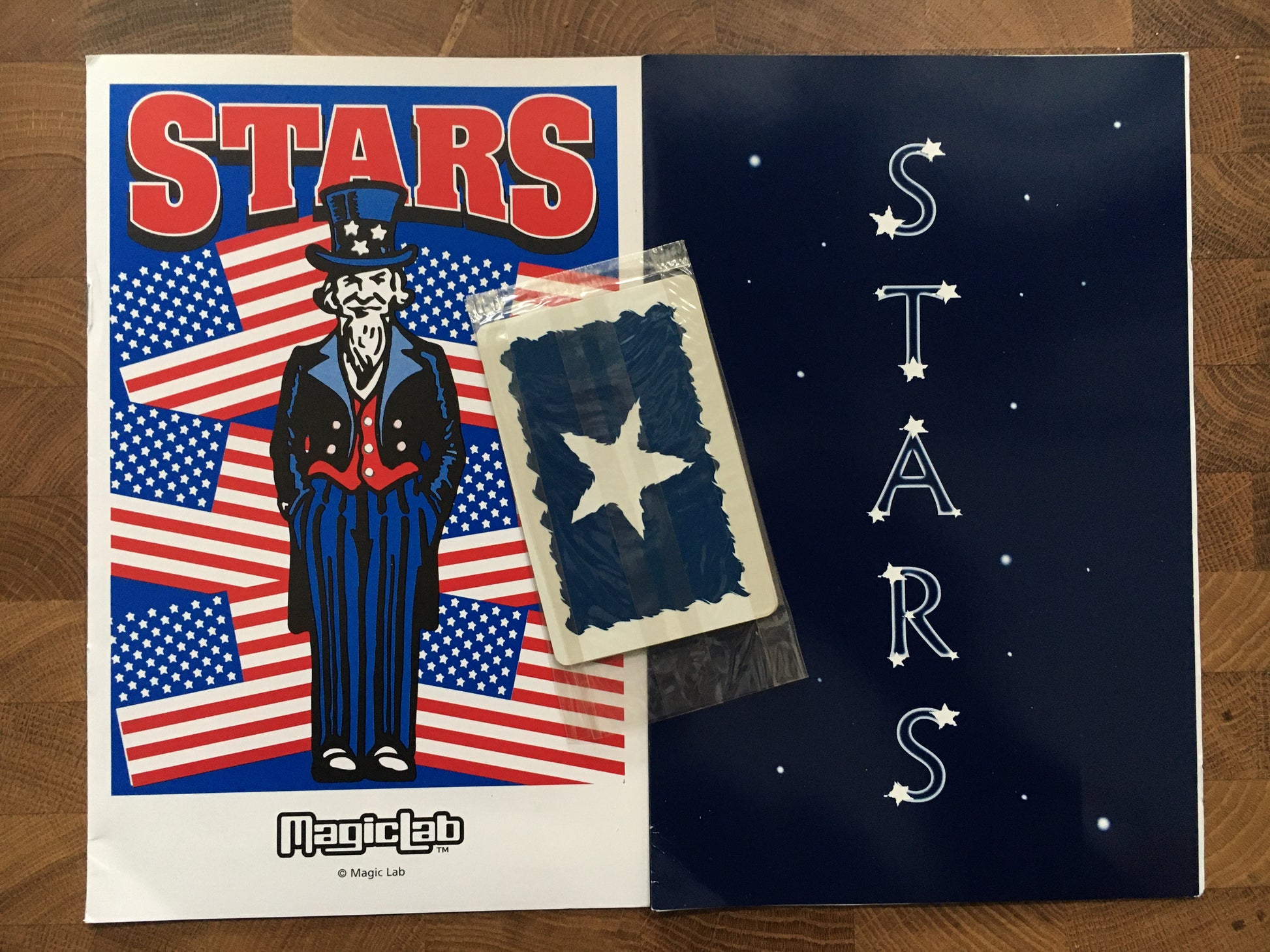 EFFECT: Each of four cards is shown to have a large star on its front and back. One of them then magically changes to a card covered with many stars! The remaining three cards then also change to cards with red stripes, and when the four are put together they form an American flag!