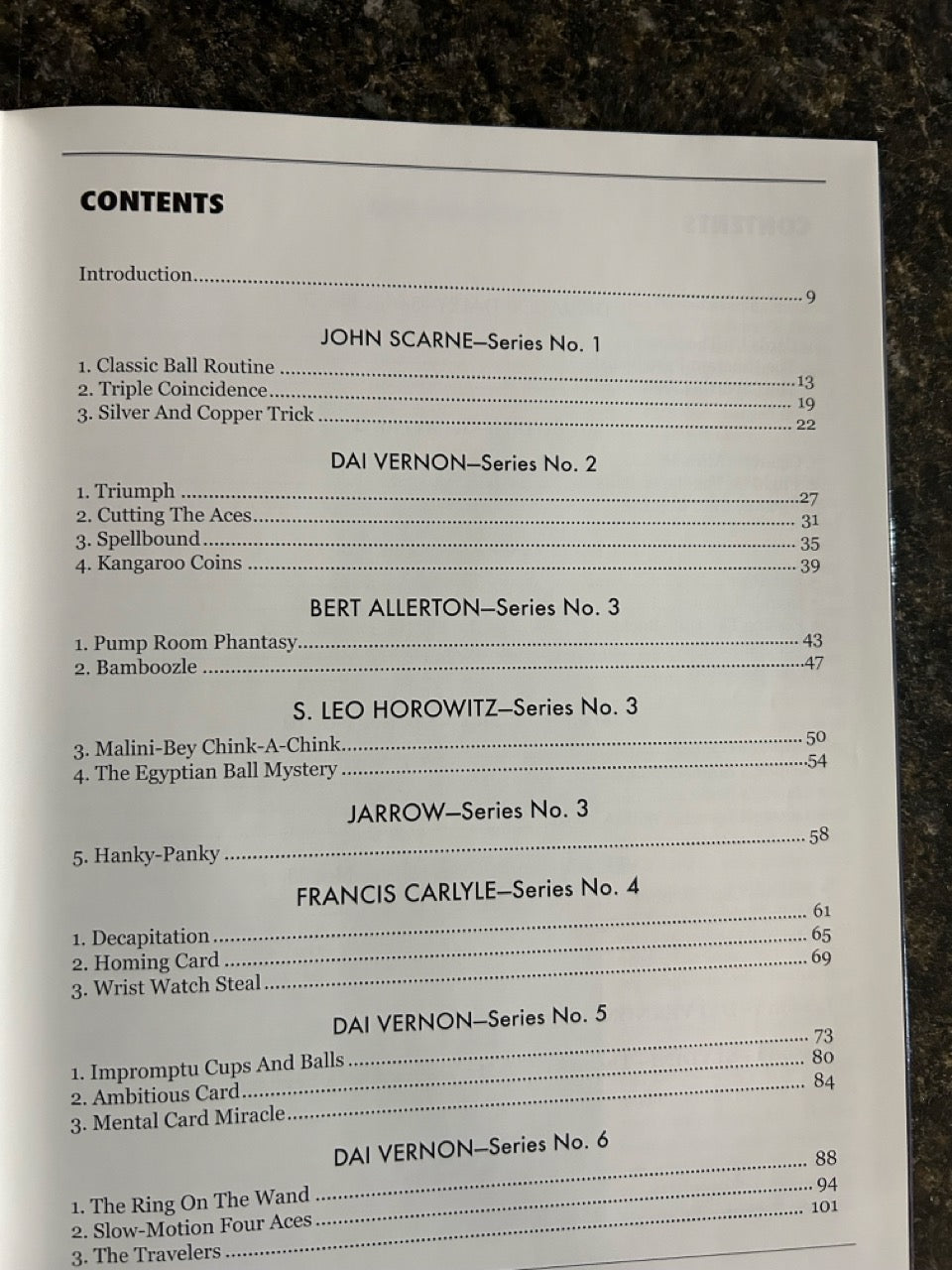 NOTE from Don: If you like close-up magic, but do not have this book, you are missing a "staple" of close-up magic, from the likes of Dai Vernon, Ross Bertram, Emil Jarrow, John Scarne, Slydini, and more. I still perform Triumph and Cutting The Aces whenever I'm asked to "Show me your best card trick".