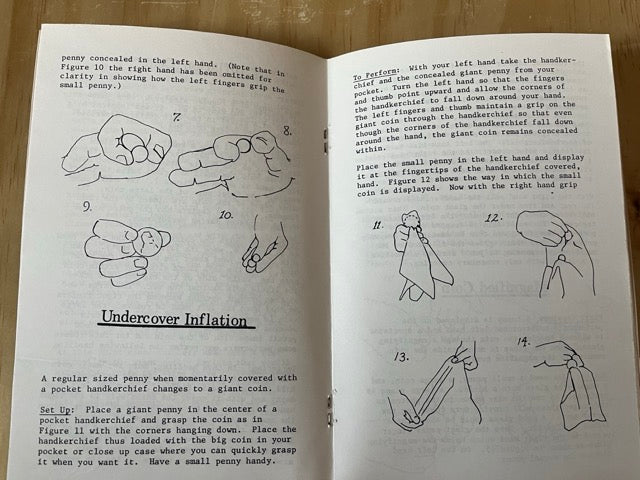 A Book of Magic Tricks you can do with Half Dollar sized or Silver Dollar sized Pennies or other Giant coins. SUPER CENTS contains a baker’s dozen of routines with the giant Silver Dollar size penny or the Half Dollar size penny. Full routines as well as quickies! Thirty-five illustrations make the learning easy. Nearly all the routines in this 28-page book can also be done with giant coins of other denominations. If you do coin magic, you must have SUPER CENTS!