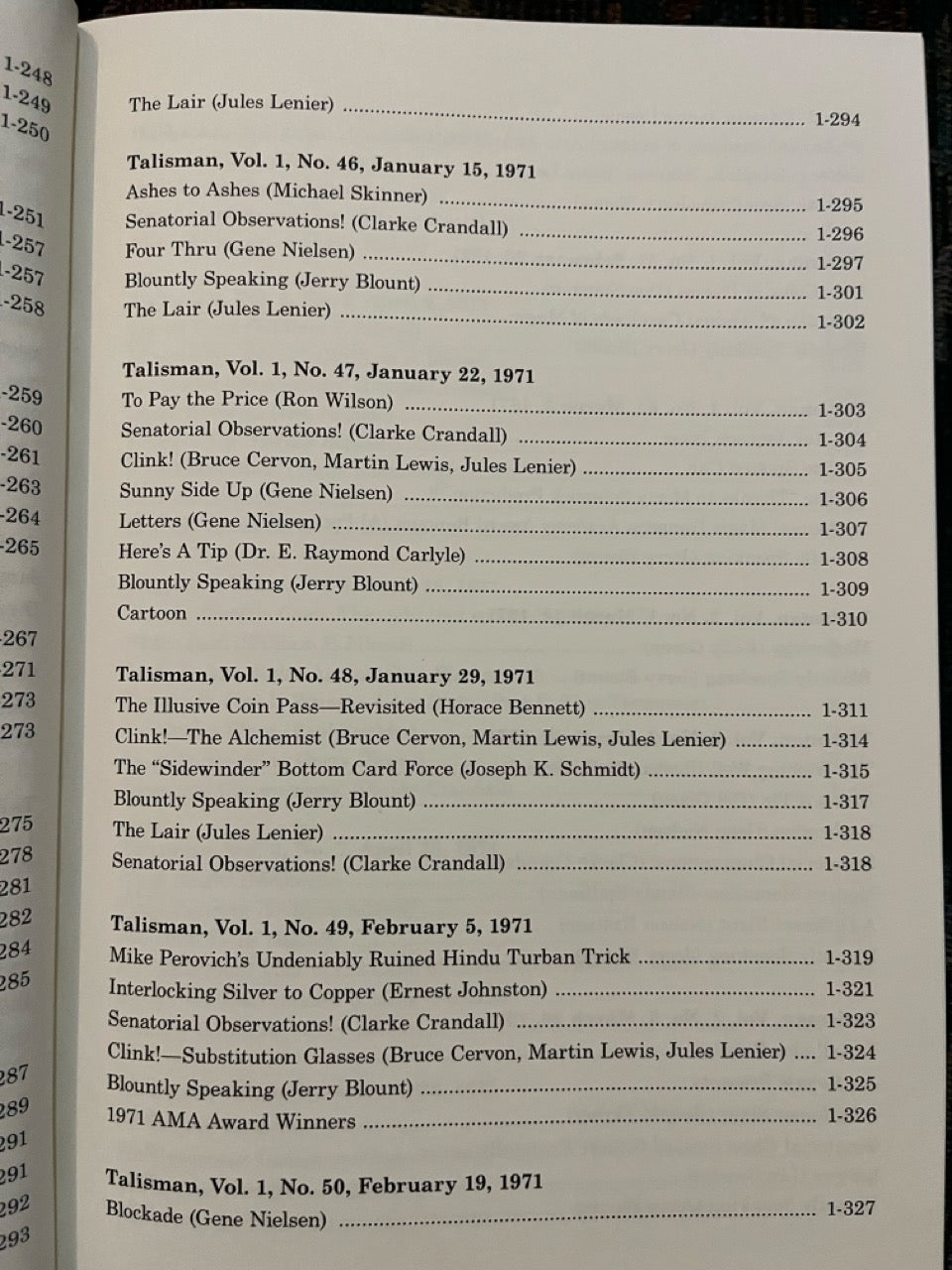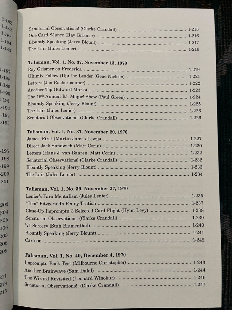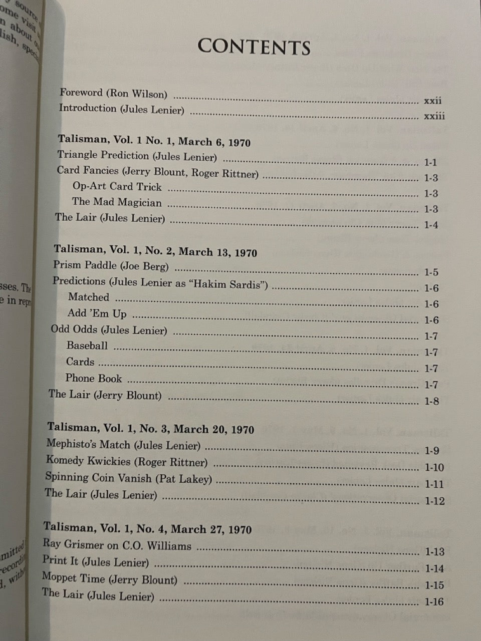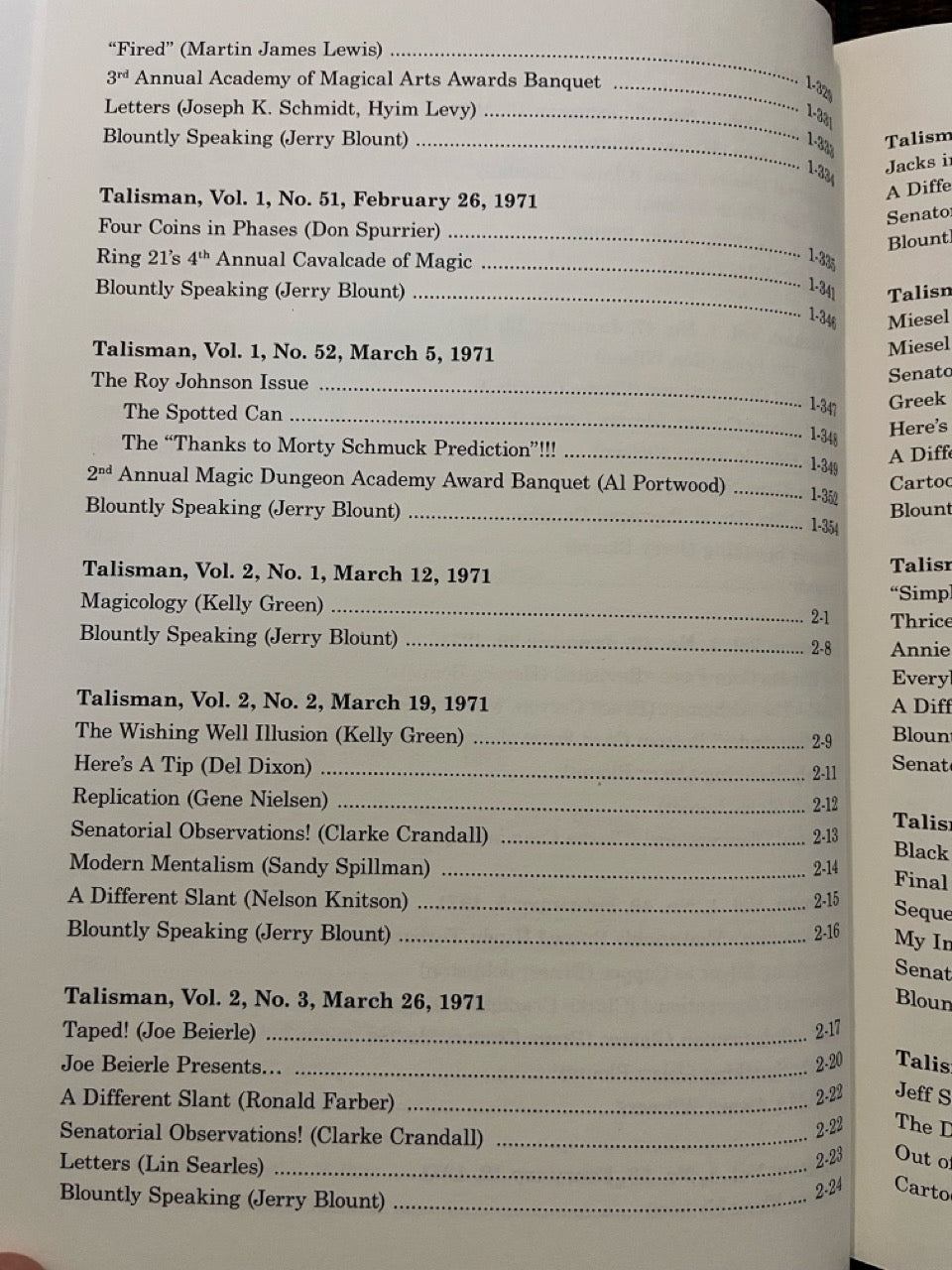Talisman: America's Only Magic Weekly. Almost unknown today, this weekly magazine published in Southern California by Jerry Blount and edited by Jules Lenier is one of the lost treasures of magic. It captures the time of its publication, the Los Angeles area in 1970 and 1971, in indelible detail.