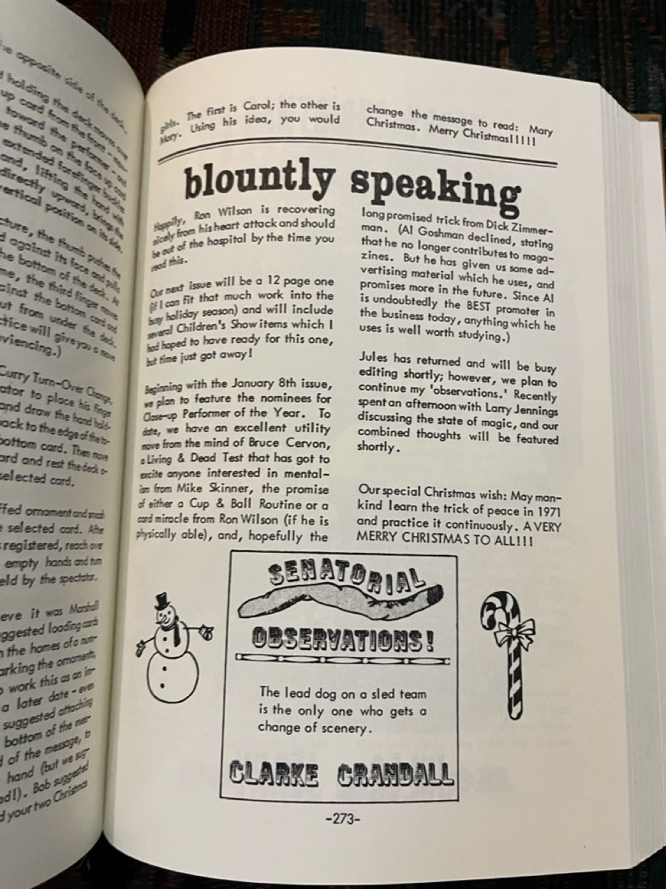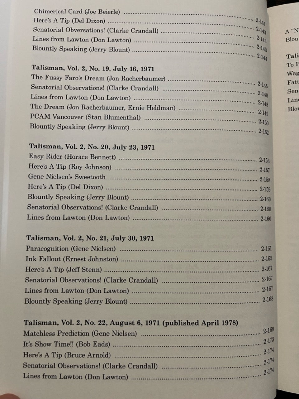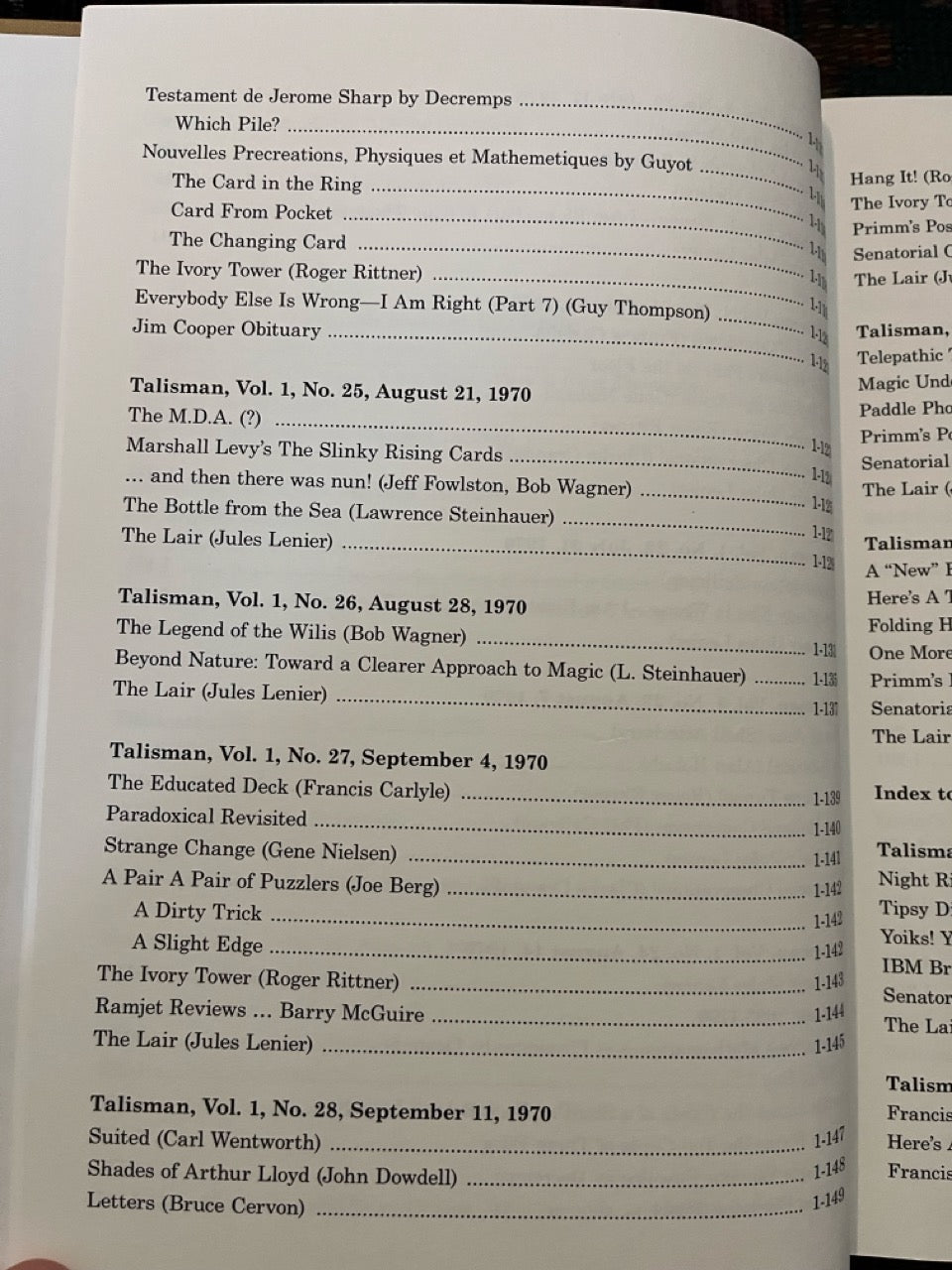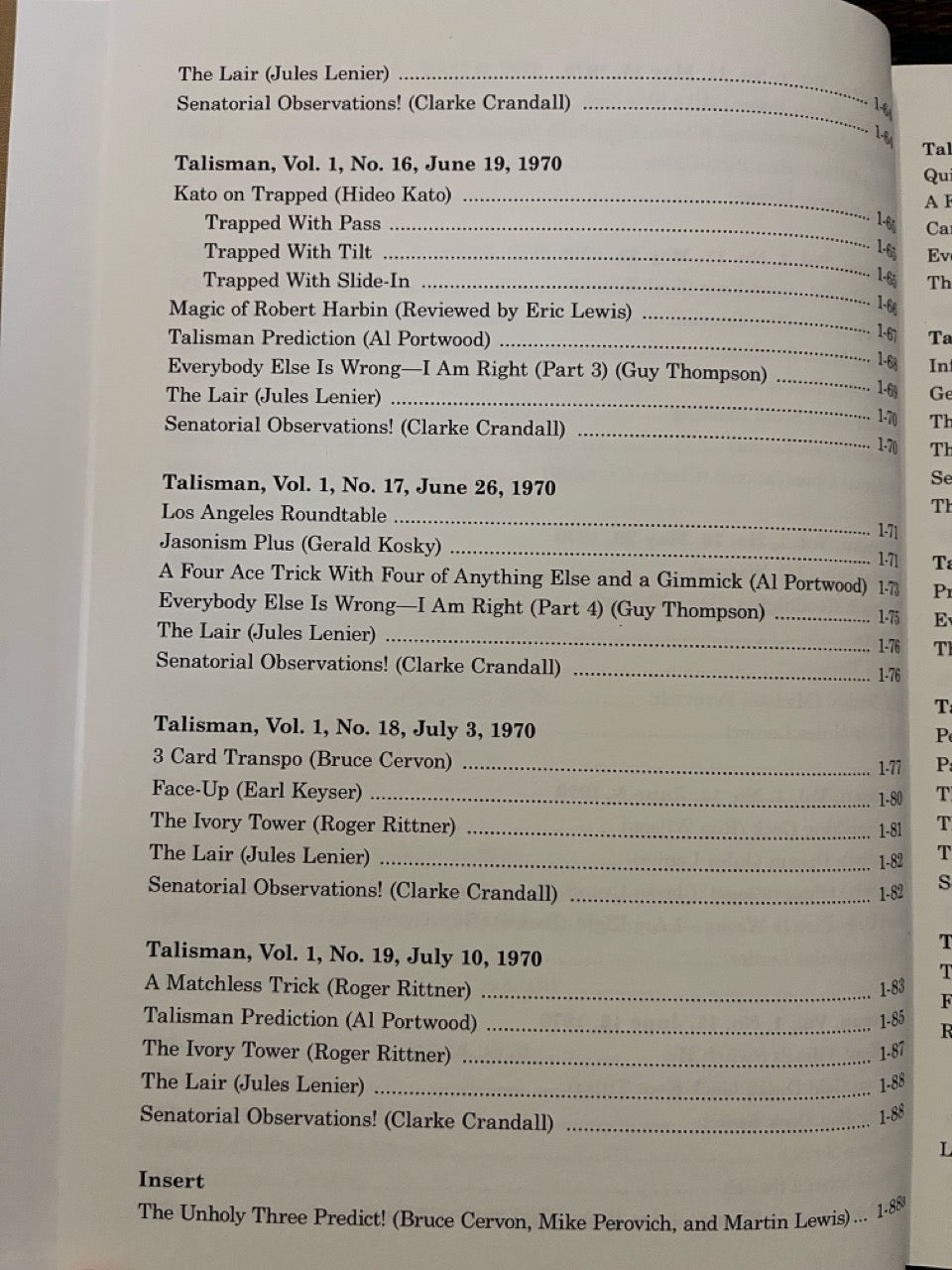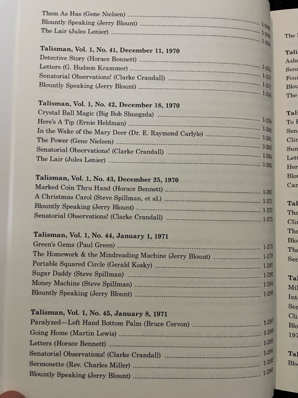 Talisman: America's Only Magic Weekly. Almost unknown today, this weekly magazine published in Southern California by Jerry Blount and edited by Jules Lenier is one of the lost treasures of magic. It captures the time of its publication, the Los Angeles area in 1970 and 1971, in indelible detail.