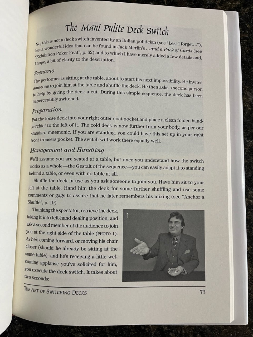 And there lies the challenge. Everyone knows about switching decks. We've all heard that card cheats do it, and magicians. In reality, though, very few magicians switch decks, because it is commonly perceived as too difficult to get away with. And since everyone knows about switching decks, even a suspicion that a deck switch might have occurred can completely undermine a performance. Therefore, if you use any deck switch, it must be not only imperceptible, but also unimaginable.