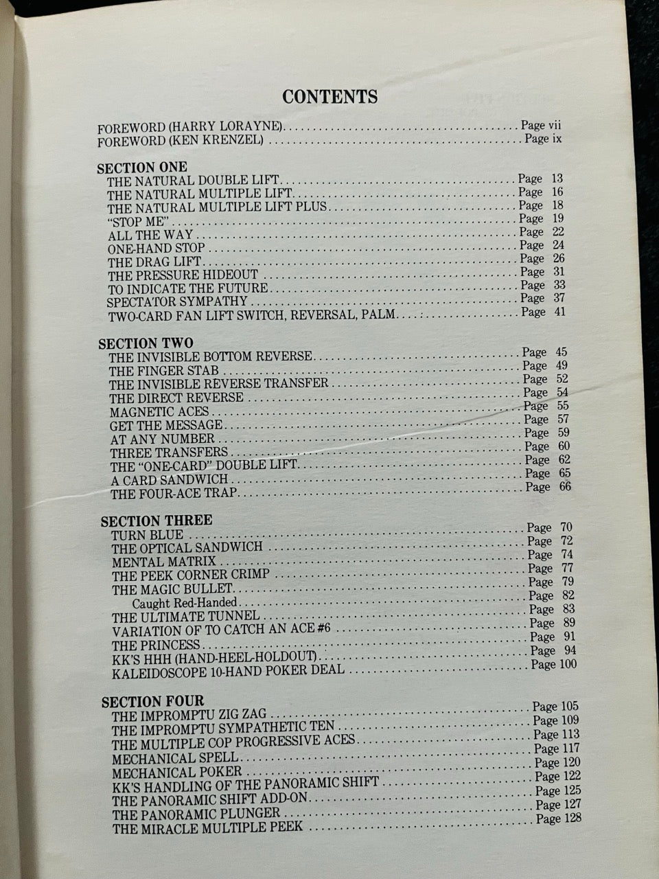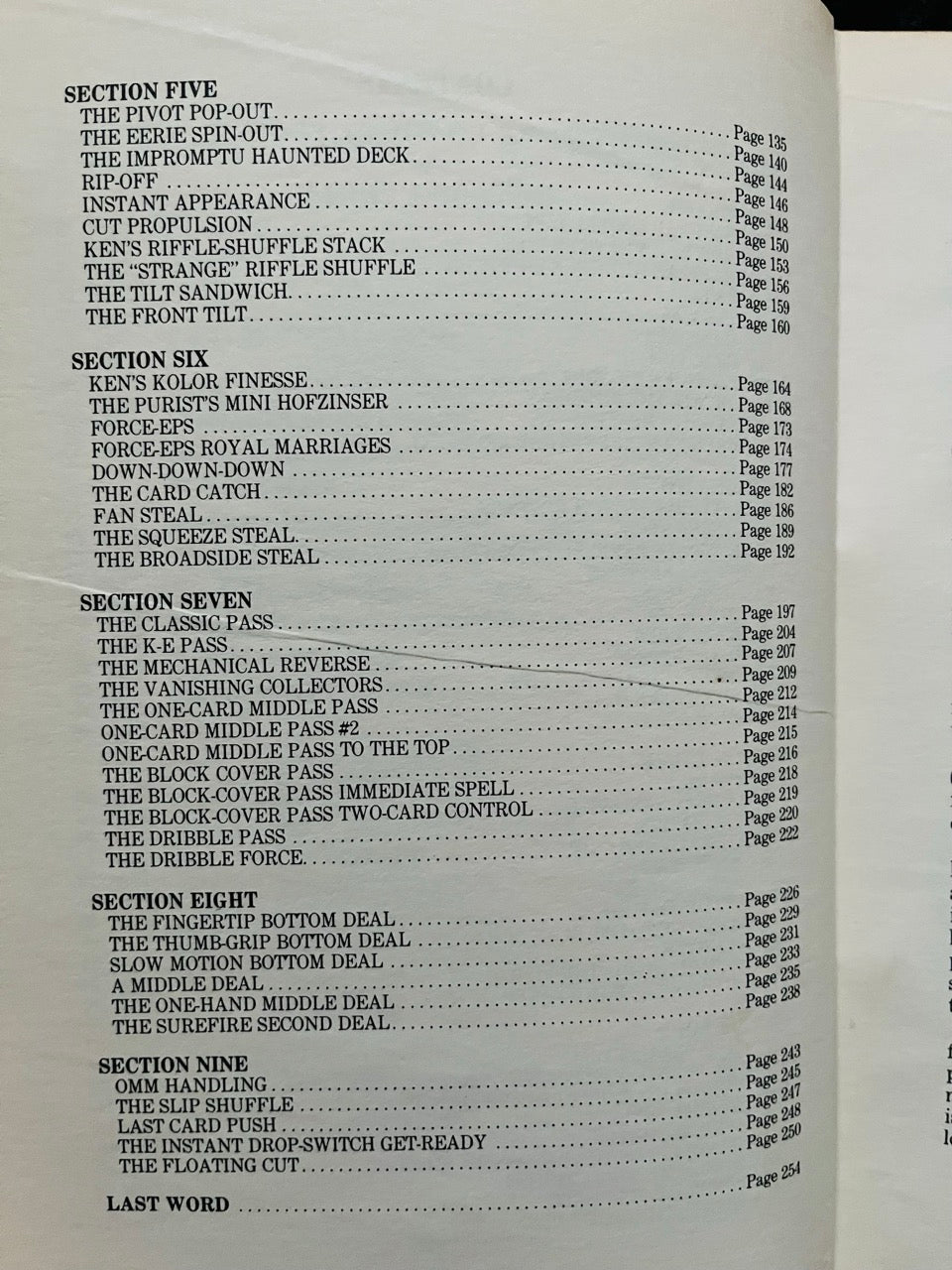 This book covers lots of card sleights such as passes, false deals, controls, color changes, and some card effects. If you love card sleights, this book is a great reference.
