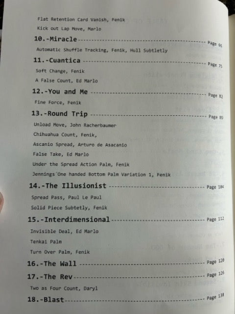 His routines such as Air Aces, Round Trip, The Rev, 88 Beast Assembly, Silver Fist and One Card Monte, have been adopted by many magicians and luckily all of these pieces are included in this book and described in detail. In THE CODE, we can also find his most recent creations that are devastating to magicians such as: Miracle, Maximum Penetration, The Number of God, The Kerigma Searchers, Interdimensional and many more.
