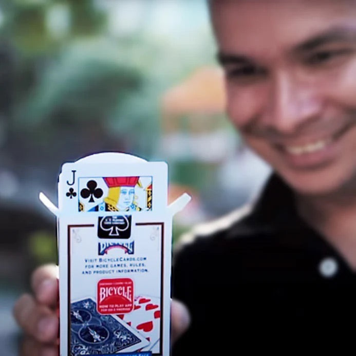 You take out the cards from the case and ask the spectator to think of one of them. After putting the game back in his package, the spectator names his card and concentrates. You start to make a few magic gestures, then, after a few seconds, a card starts to go up very slowly. This is the spectator's thought card!