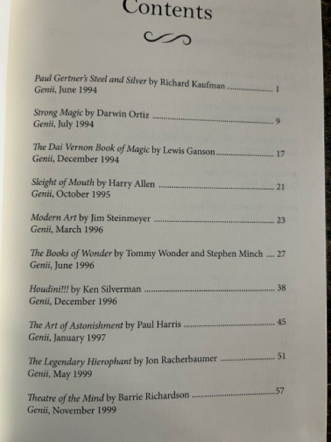 For the collectors, Vanishing Inc. has produced a stunning deluxe set of books called "The Works - Deluxe Collection" that also includes a fourth volume NOT AVAILABLE SEPARATELY. The fourth book, Light and Heat collects the very best of Swiss's book reviews from his heralded Genii column. This special volume is comprised of pieces Jamy and friends handpicked from almost twenty years of informative reviews. You can only obtain Light and Heat by purchasing "The Works" deluxe set.
