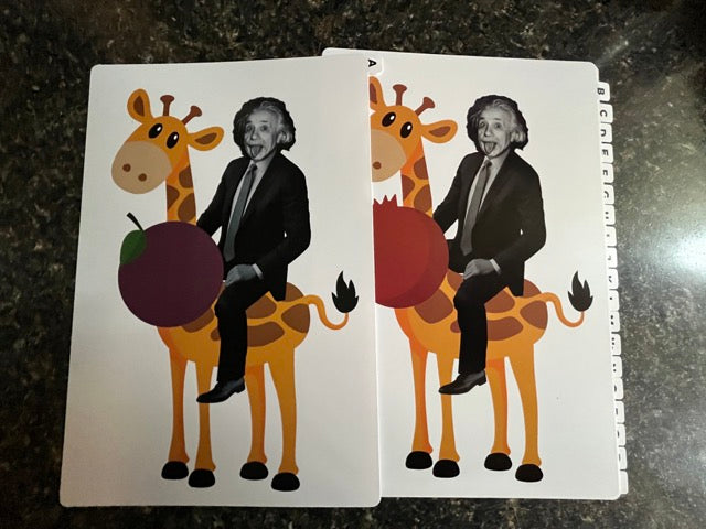 Three volunteers are invited to make various selections. From the audience's perspective, one of them is thinking of a famous person, another person is thinking of an animal and the last person is thinking of a fruit. For example, Albert Einstein riding a giraffe while eating an apple. This seems like a ridiculous combination. Yet, you're able to prove you knew they would make these choices in a hilariously visual way.
