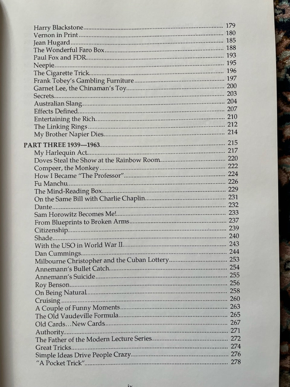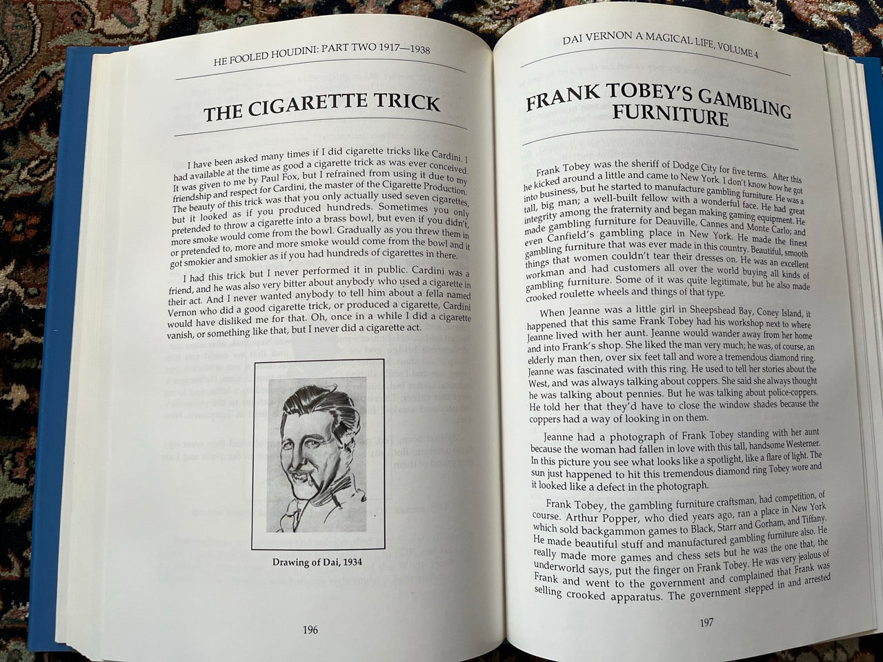 This fourth volume of The Vernon Chronicles is a complete change of pace from the three that preceded it. In the works since 1965, this enthralling anecdotal biography follows Dai Vernon from his birth to his coming to Hollywood's world-famous Magic Castle in 1963. As you read you will feel as if you are sitting with Dai at the Magic Castle while he shares the stories and experiences of his lifetime.