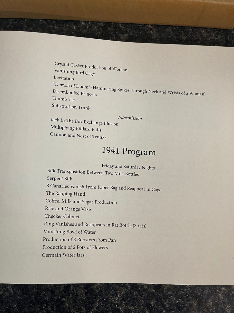 Willard – A Life Under Canvas is number 14 in our series of Magical Pro-Files. It contains 370 pages with 276 photographs and because the entire book has been printed in two colors, we were able to print many of the photos in duotone, giving them the feel of a hot, dusty tent show. Eight pages of full color show Willard in action along with some beautiful portraits of his well-worn apparatus.