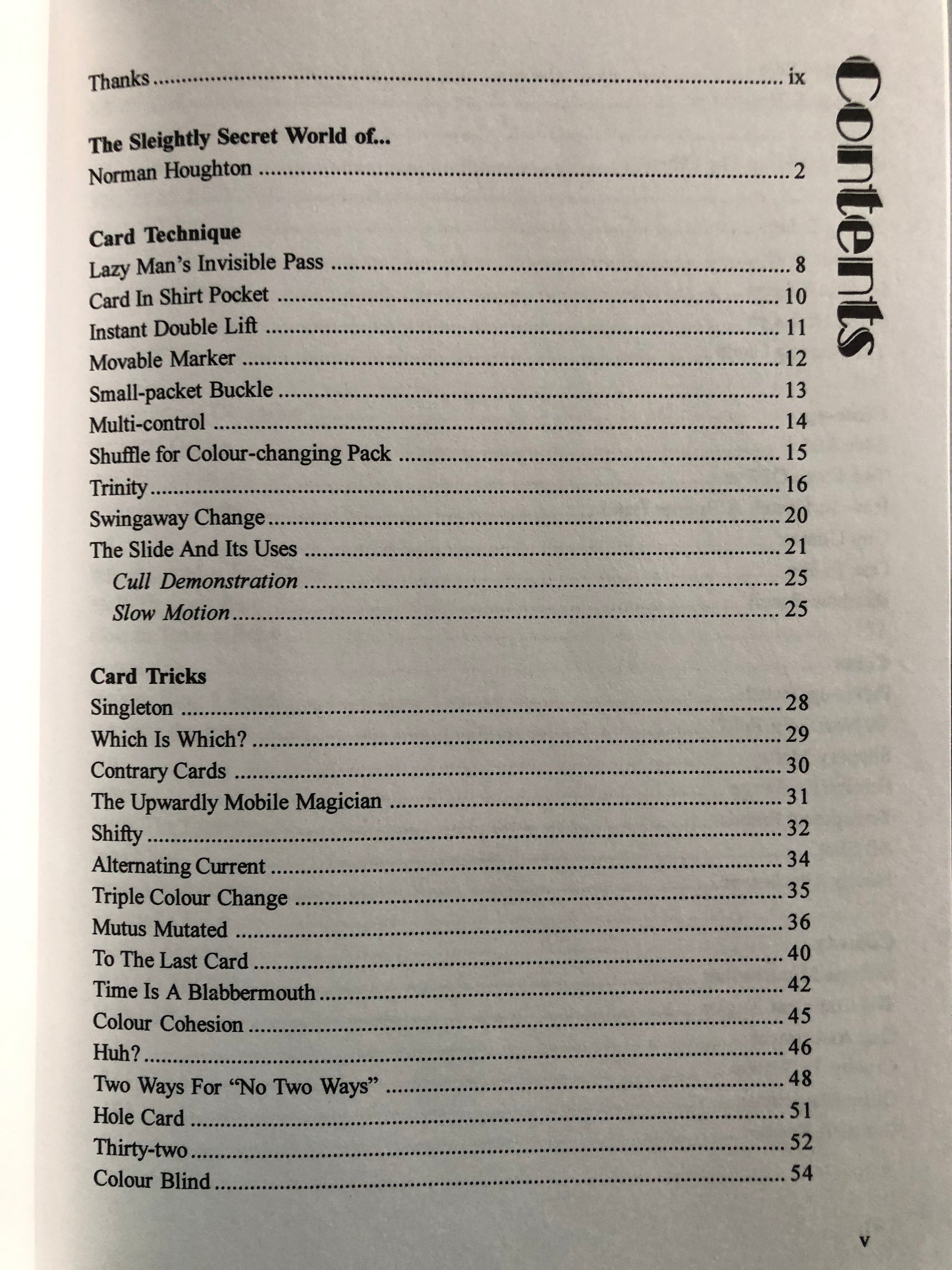 “There are men and women in magic who move along beneath the surface of events, quietly affecting and influencing the actions of their more public peers. They are highly respected, often consulted, and genuinely admired by the alert and intelligent in the magic community. Norman Houghton of Canada is one of these.” —from the introduction by David Drake Norm Houghton was a friend of Howard Lyons and a regular at FFFF. For over sixty years, he contributed much material not only to Howard’s famous Ibidem magazine, but also to Abra, Apocalypse,The Bat, The Gen, Genii, Hugard’s Magic Monthly, The Jinx, The Linking Ring, New Pentagram, The New Phoenix, Tops, Pallbearer’s Review, Precursor, Ruminations, The Sphinx, The Trapdoor, as well as several books. Now, for the first time, all of Norm’s published magic — as well as some unpublished material — is available in one place. Here you will find easy-to-do magic with cards, coins, ropes, silks, and more, as well as tips, ideas, gags, pure comedy routines and one-liners. Included are: ◾The Slide and its uses: a short treatise on the Hofzinser card pass ◾A Study in Frustration: in which you attempt to find the 51 cards chosen by the spectator — but always find the not-chosen card instead! ◾How to Stretch a Rubber Band: a rubber band stretches to three times its length in the hands ◾Palms-up Switch: a virtually move-less switch for coins or other small objects ◾Chinese Mindreading: in which you correctly guess what the spectators are not thinking of! ◾Optional Oracle: a notepad for making predictions with up to NINE outs! ◾Facsimile Knot: perhaps the cleanest way of putting a false knot in a silk and much, much more. The tricks are as much fun to read as they are to perform and to watch. Most come with humorous presentations that are just delightful. For anyone who enjoys off-beat, humorous and easy-to-do magic, Wit & Wizardry is a genuine find!