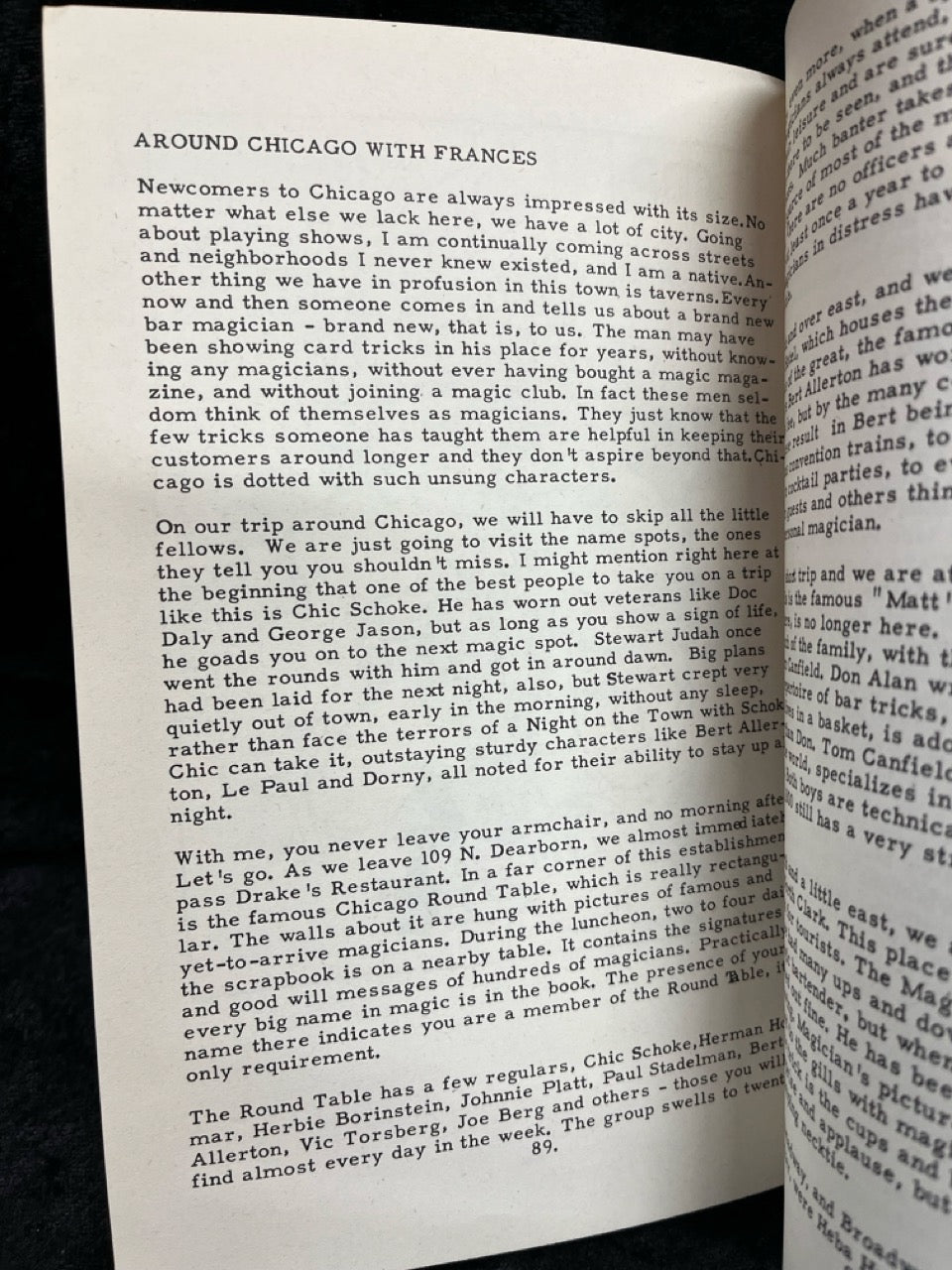 133 page book with Frances Ireland's history of magic, along with stories of all of her adventures with other magicians.