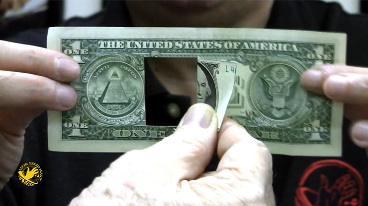 You then offer to show one of its mysterious secrets when you unfold the bill, while the spectator is still holding it. When the bill is unfolded it is now facing in the opposite direction. With the green side, with the pyramid and the all-seeing eye facing the spectator and George Washington facing you. Everything is examinable throughout and can even be given out as a souvenir.