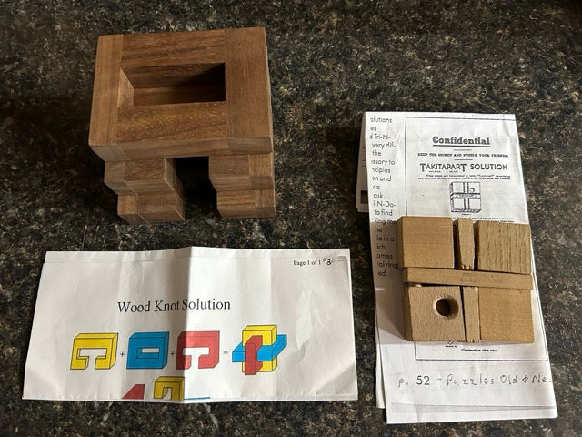 2 wooden assembly puzzles, with instructions